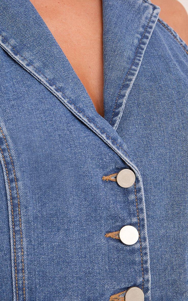 Button Front Waistcoat In Blue Denim