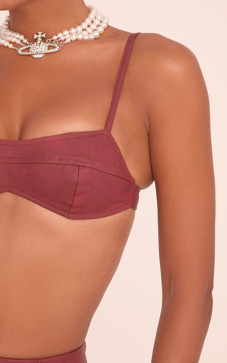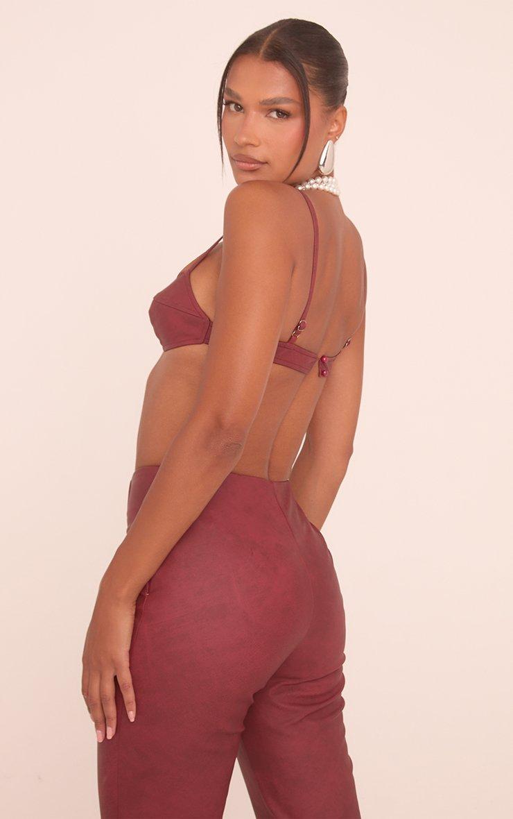 Strappy Cropped Bralet Top In Washed Plum Faux Leather