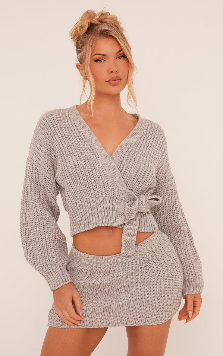 Add some serious chic with this Low Rise Mini Bodycon Skirt in Grey Knit. With a soft grey knit and bodycon stye this grey knit mini skirt is all about them cute and cosy vibes. The low rise fit keeps it on trend while the mini length Is all about showing off those legs. Pair with the matching cardigan for a knitted co-ord that’s sure to steal the stars this season!