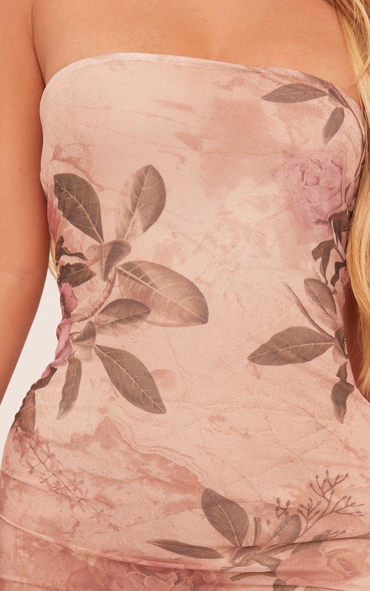 Bandeau Floral Print Maxi Dress In Pale Pink Mesh