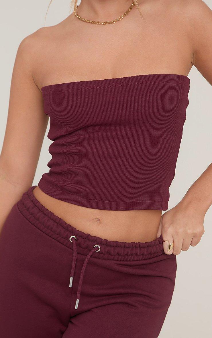Bandeau Top In Plum Cotton Rib