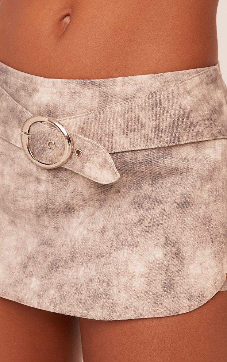 Low Rise Belt Detail Mini Skort In Stone Acid Wash