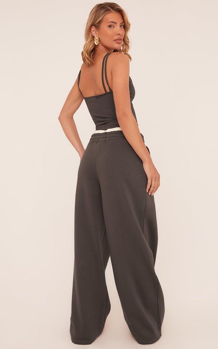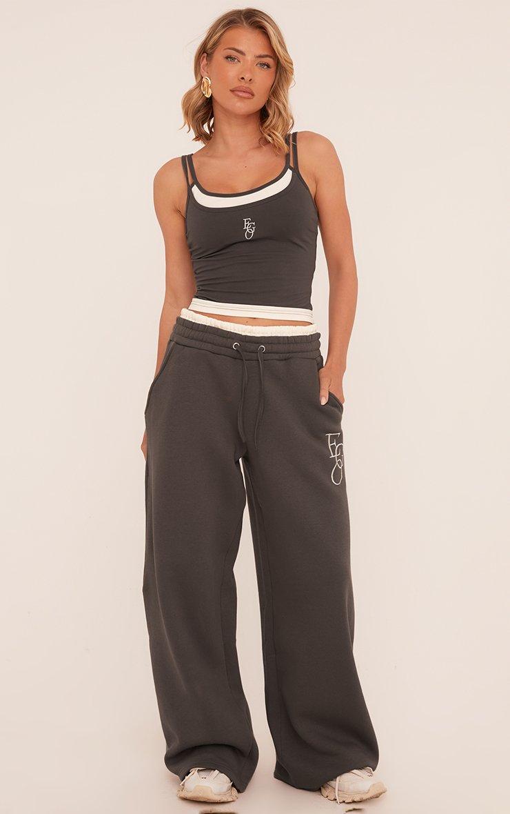We are obsessed with these Tie Contrast Waistband Wide Leg Joggers In Grey. These khaki wide leg joggers boast an adjustable tie waist, chic contrast waistband and luxe EGO logo for the perfect mix of snug and stylish. Pair these wide leg joggers with the matching tank top for a luxe, low-key vibe!