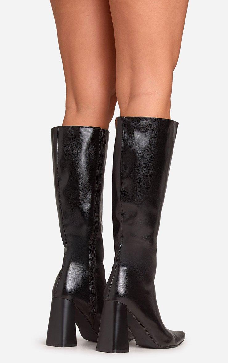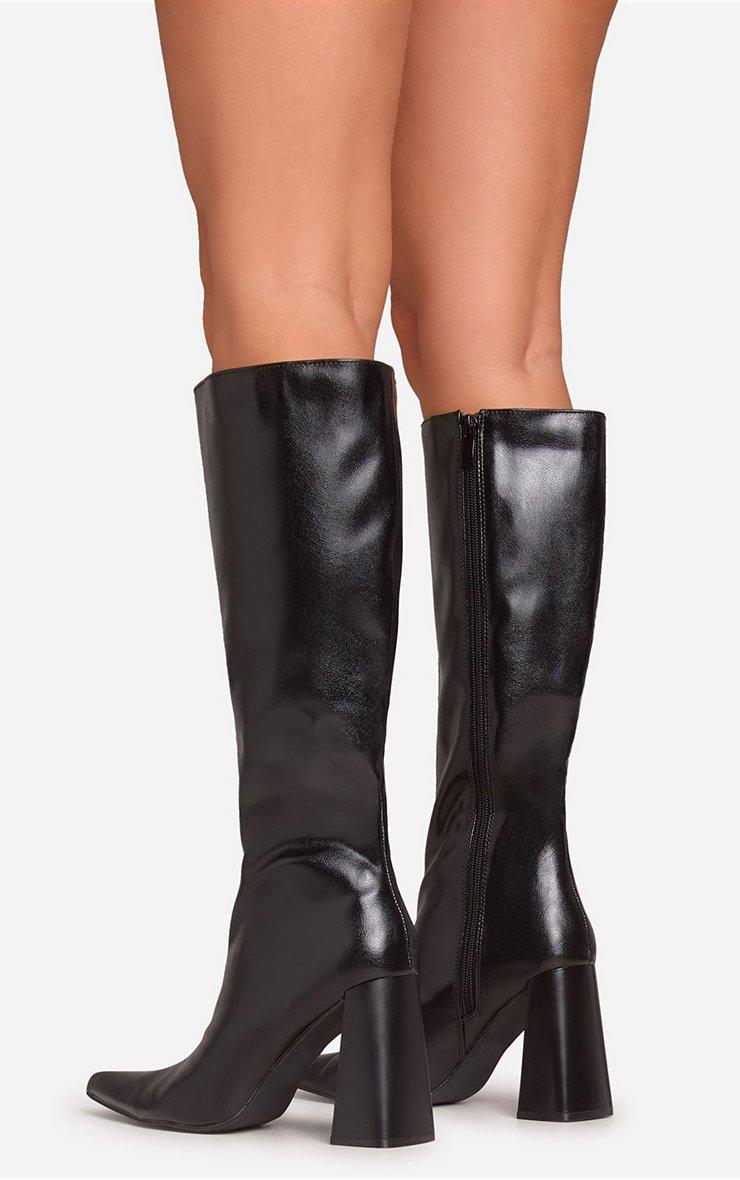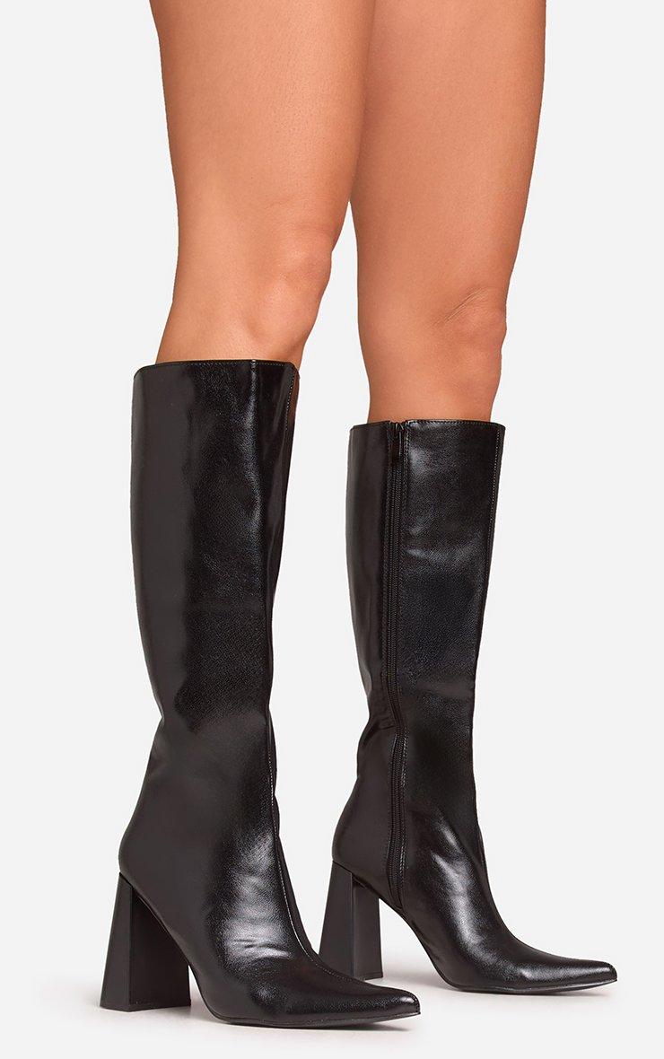 Own the season with these statement boots, doll! Featuring a black faux leather material with a pointed toe and a chic block heel, these knee-high beauties are your ultimate autumn must-have.