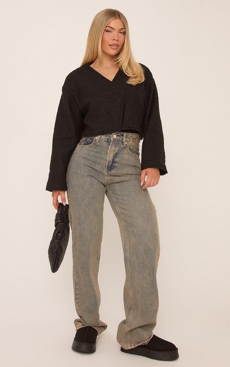 Enter your cosy era with our Asymmetric Button Front Cropped Jacket in Black Faux Wool. This black cropped wool jacket is all about sharp, stylish vibes with its chic asymmetric cut and classic button front style. Crafted in black faux wool, this cropped jacket is perfect for layering over any outfit for that extra bit of attitude.