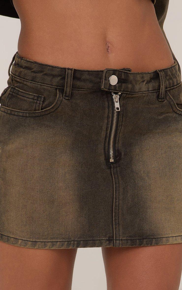 Low Rise Motocross Mini Skirt In Washed Brown Denim