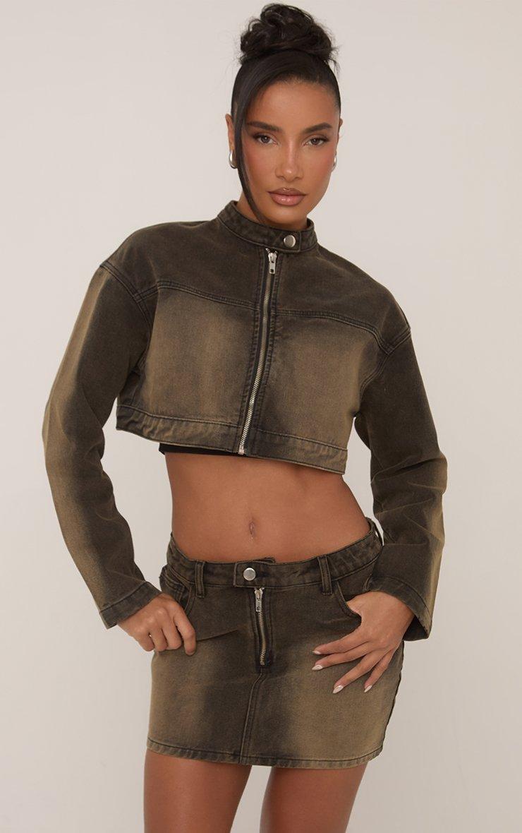 Serve baddie energy in our Low Rise Motocross Mini Skirt In Washed Brown Denim. This brown denim mini skirt​ adds a bold, edgy vibe with its sexy low rise fit and washed finish. Style this mini skirt with the matching motocross jacket for instant outfit envy!