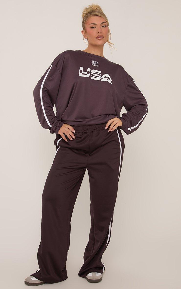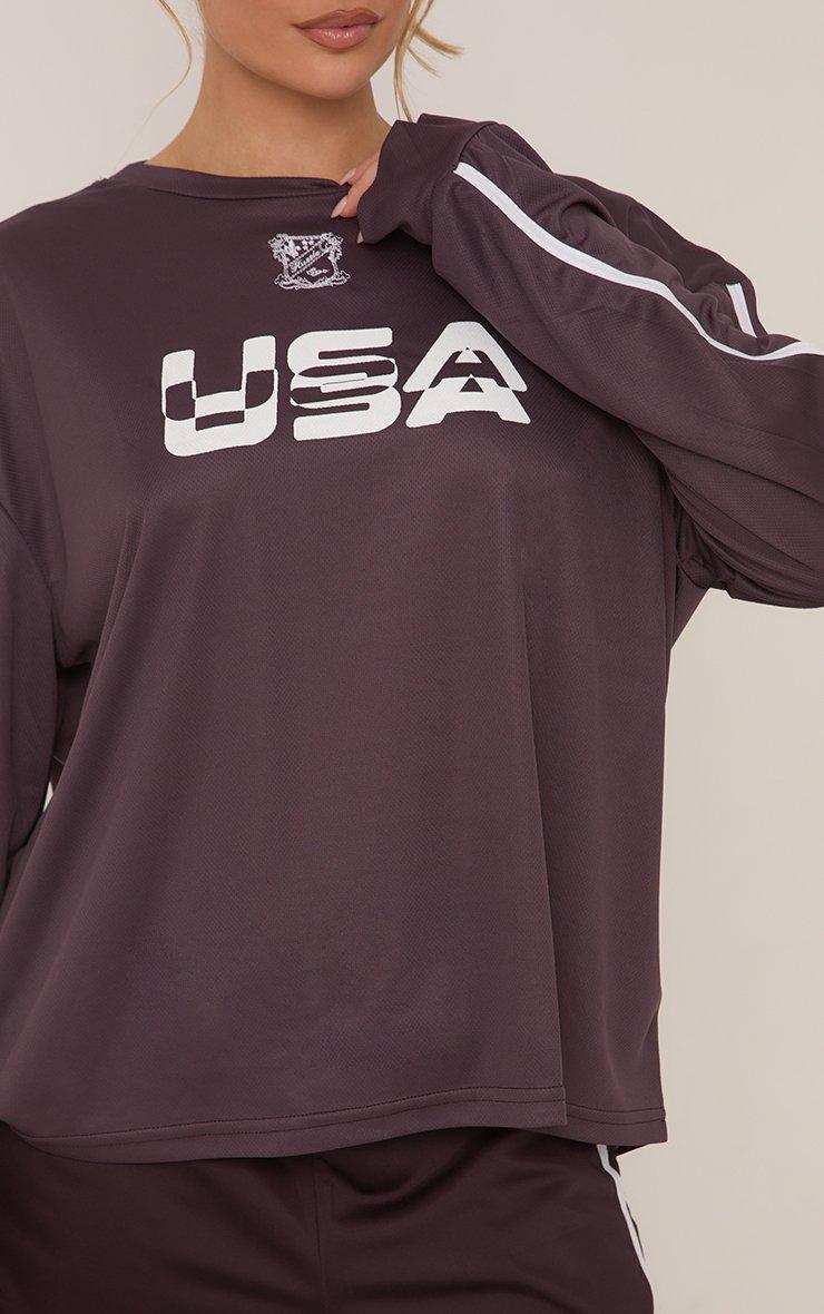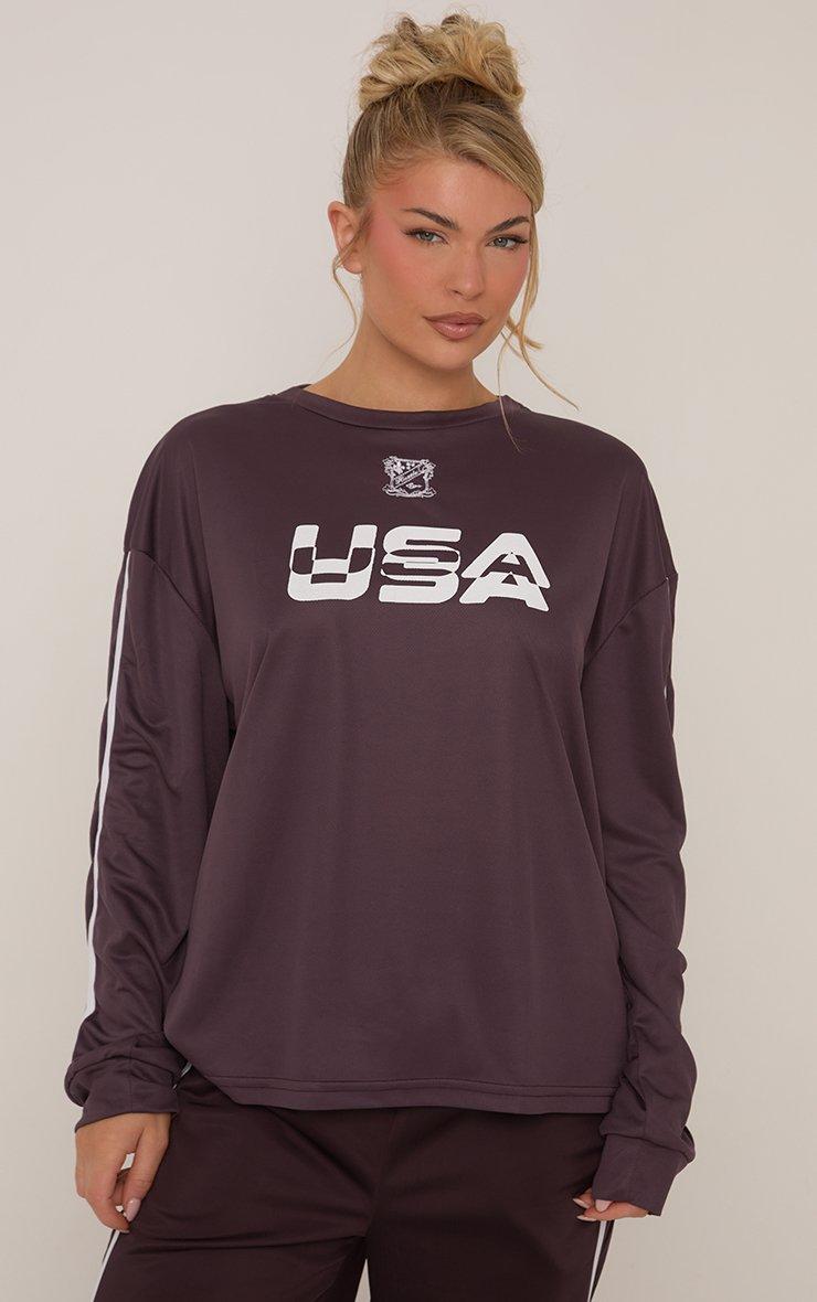Level up your chill vibes with our Long Sleeve USA Graphic Contrast Stripe T-Shirt In Plum. This long sleeve graphic t-shirt channels sporty-chic with its ‘USA’ logo and contrast stripe design. Crafted in a rich plum tone, this graphic t-shirt keeps you comfy and on-trend.