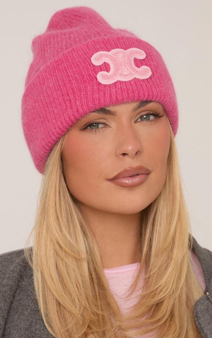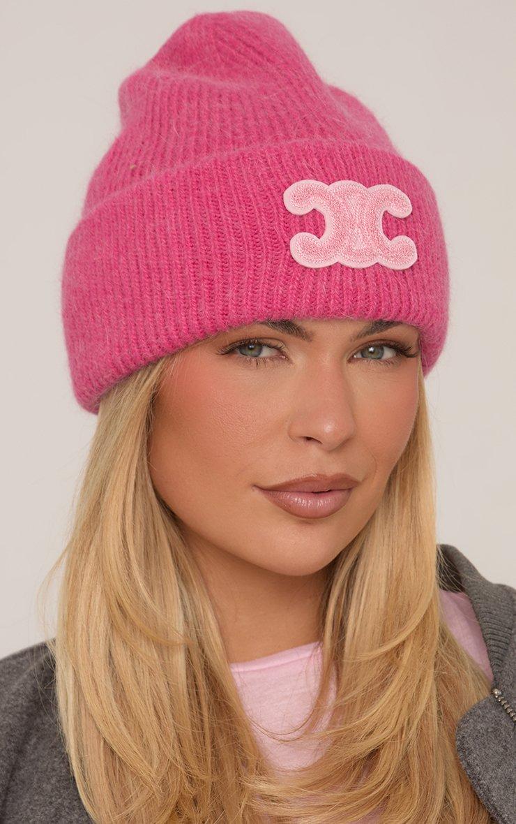 Braving the chill with style, doll? This pink knit beanie features a fold-over design and contrast logo detailing, adding a touch of sleek attitude to your winter look while keeping you cosy and cool.