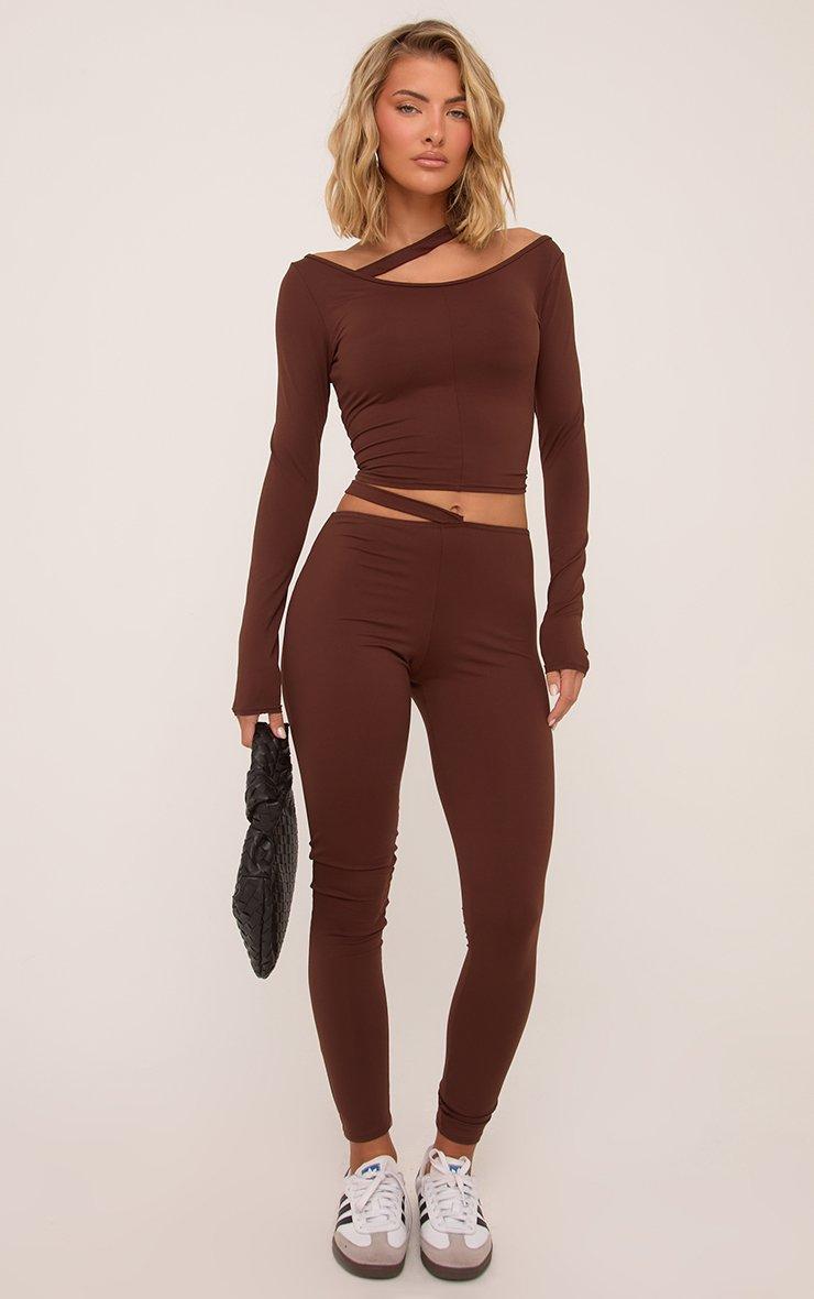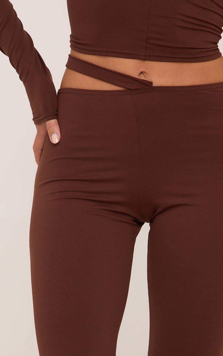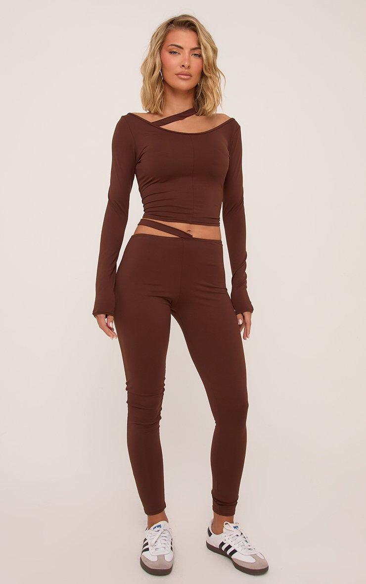 Mid Rise Strap Detail Leggings In Brown