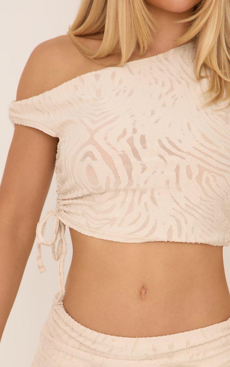 Asymmetric One Shoulder Ruched Side Crop Top In Cream Texture