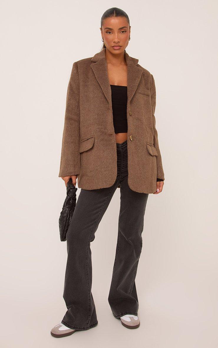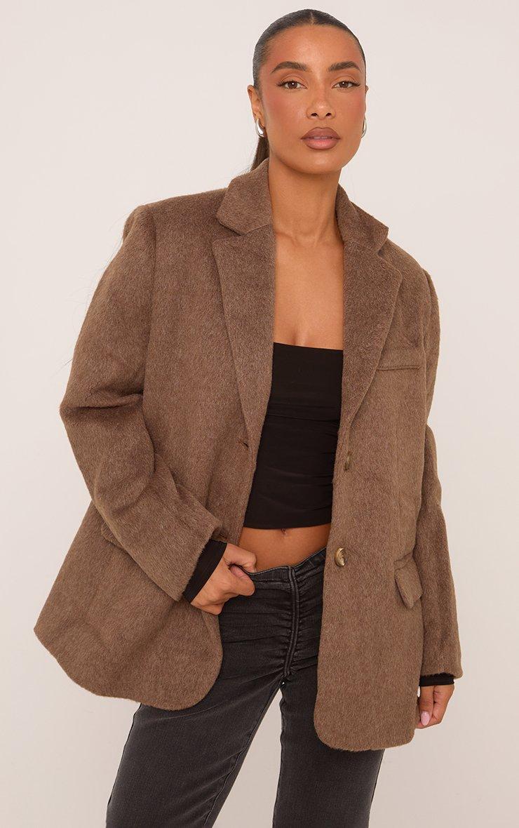 Oversized Tailored Blazer In Brown Faux Fur