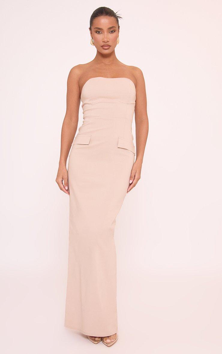 Bandeau Tailored Maxi Dress In Stone