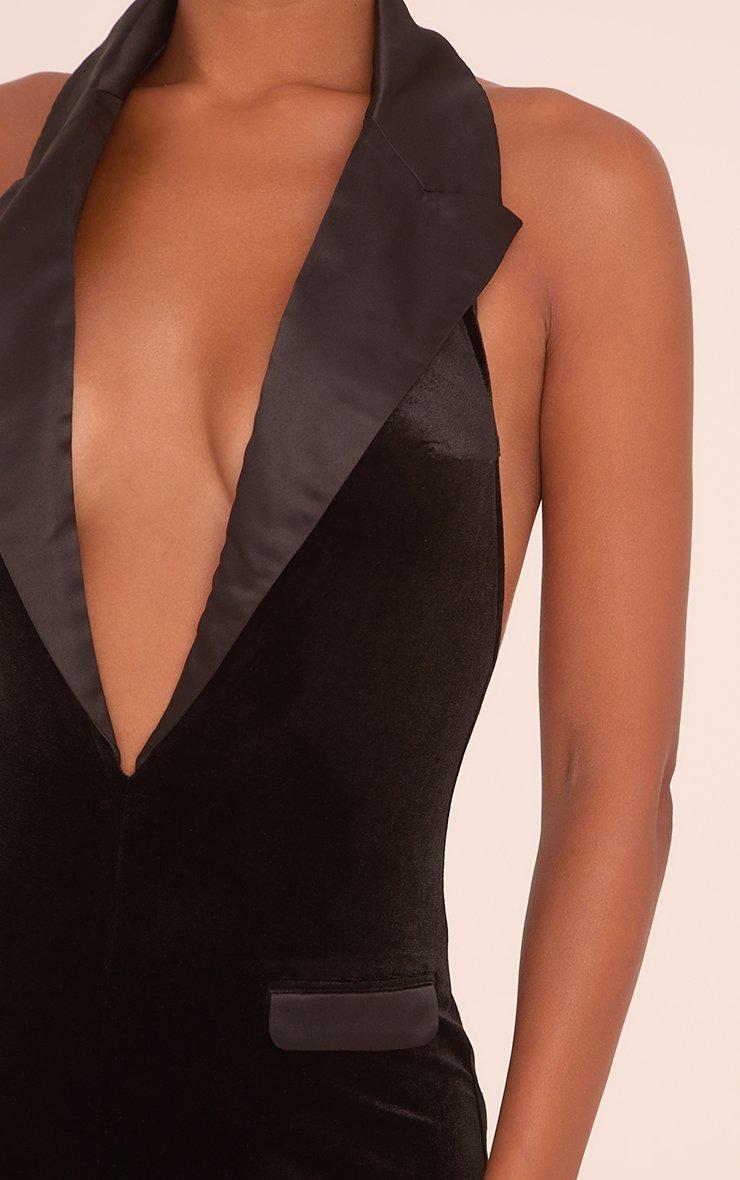 Halterneck Satin Contrast Open Back Tailored Playsuit In Black Velour