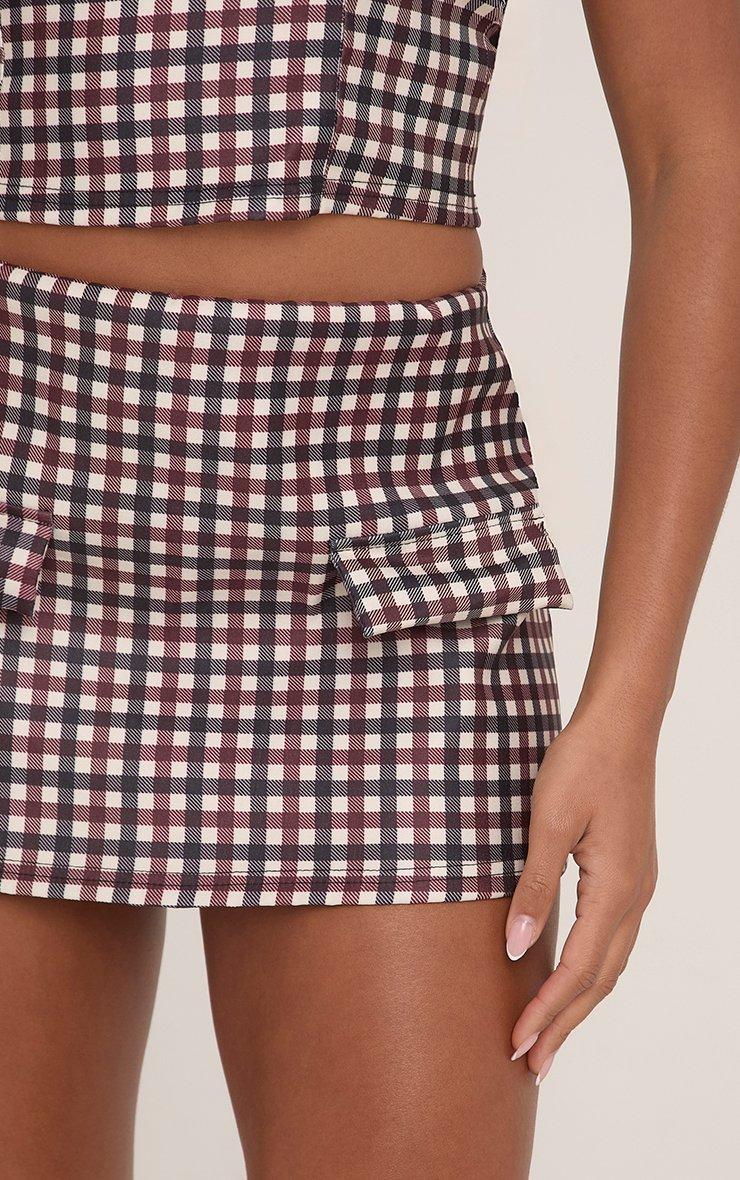 High Waist Pocket Detail Mini Bodycon Skirt In Brown Check Print
