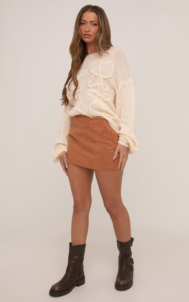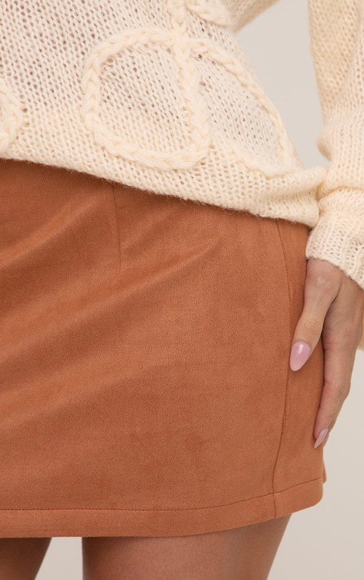Mid Rise Mini Skirt In Tan Brown Faux Suede