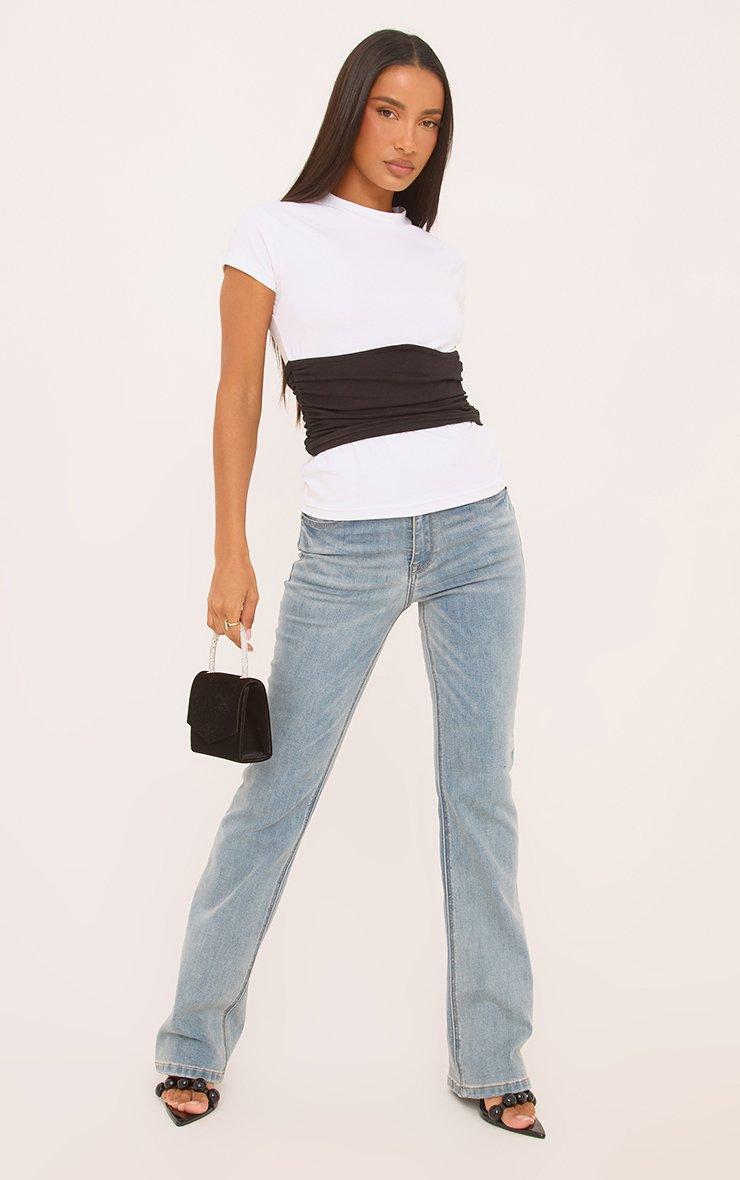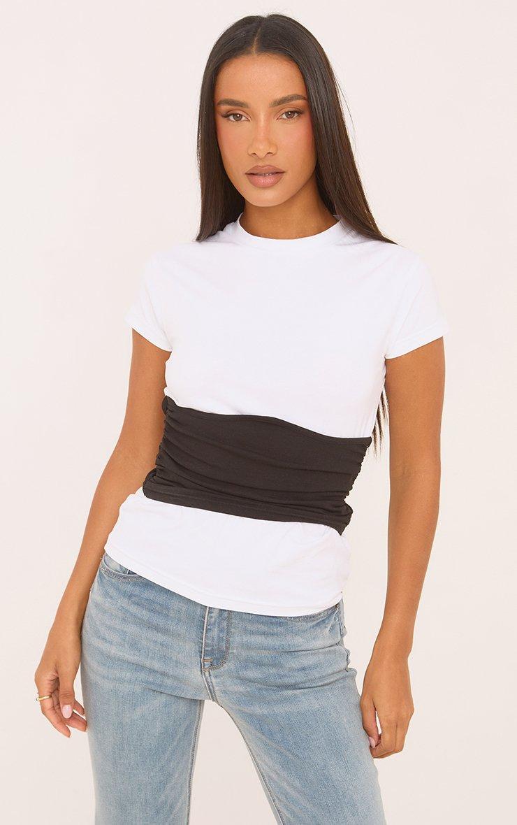 Short Sleeve Contrast Corset Overlay T-Shirt In White
