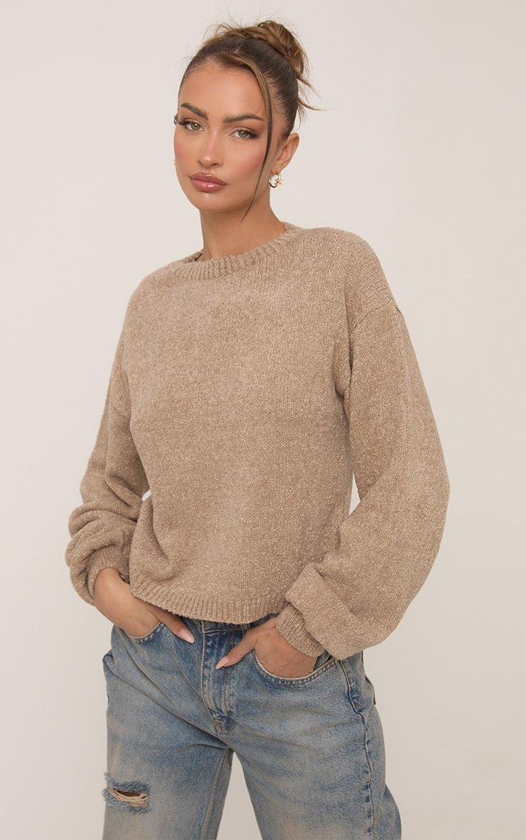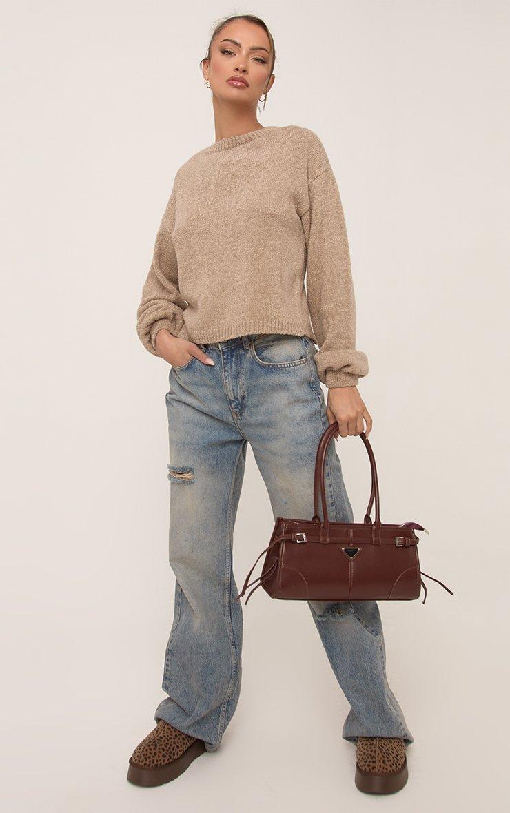 Tie Back Detail Oversized Jumper In Stone Knit