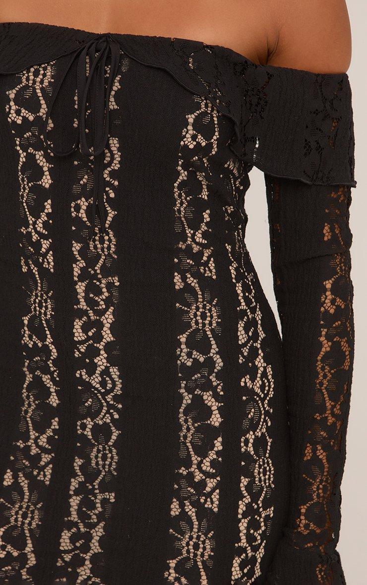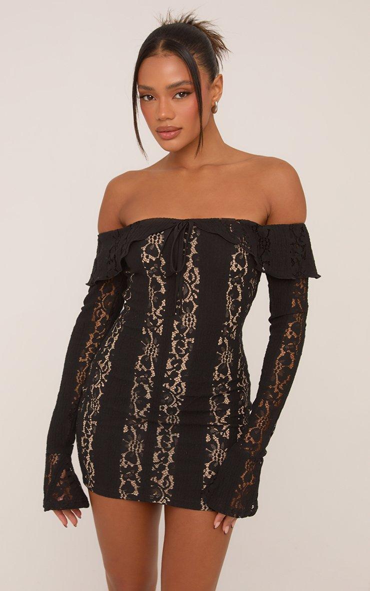 Bardot Tie Front Mini Bodycon Dress In Black Crochet Lace