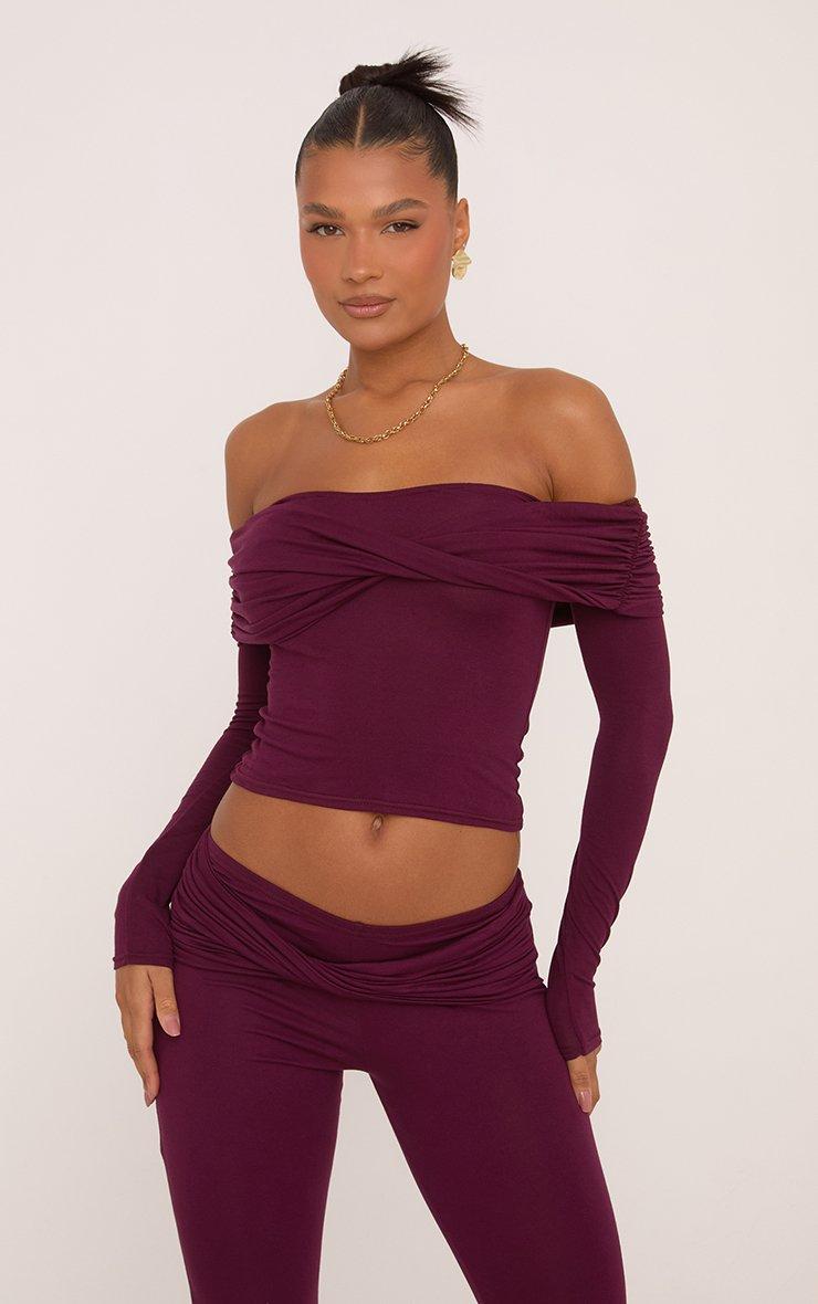 Heading out for a cute date, doll? Featuring a luxe plum material with stylish twist detailing, this top offers a flattering bardot cut that shows off your shoulders perfectly, adding a touch of sass to any outfit!