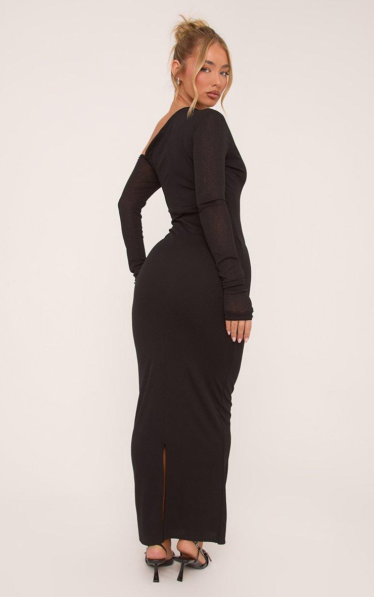 Long Sleeve Asymmetric Maxi Dress In Black Sheer
