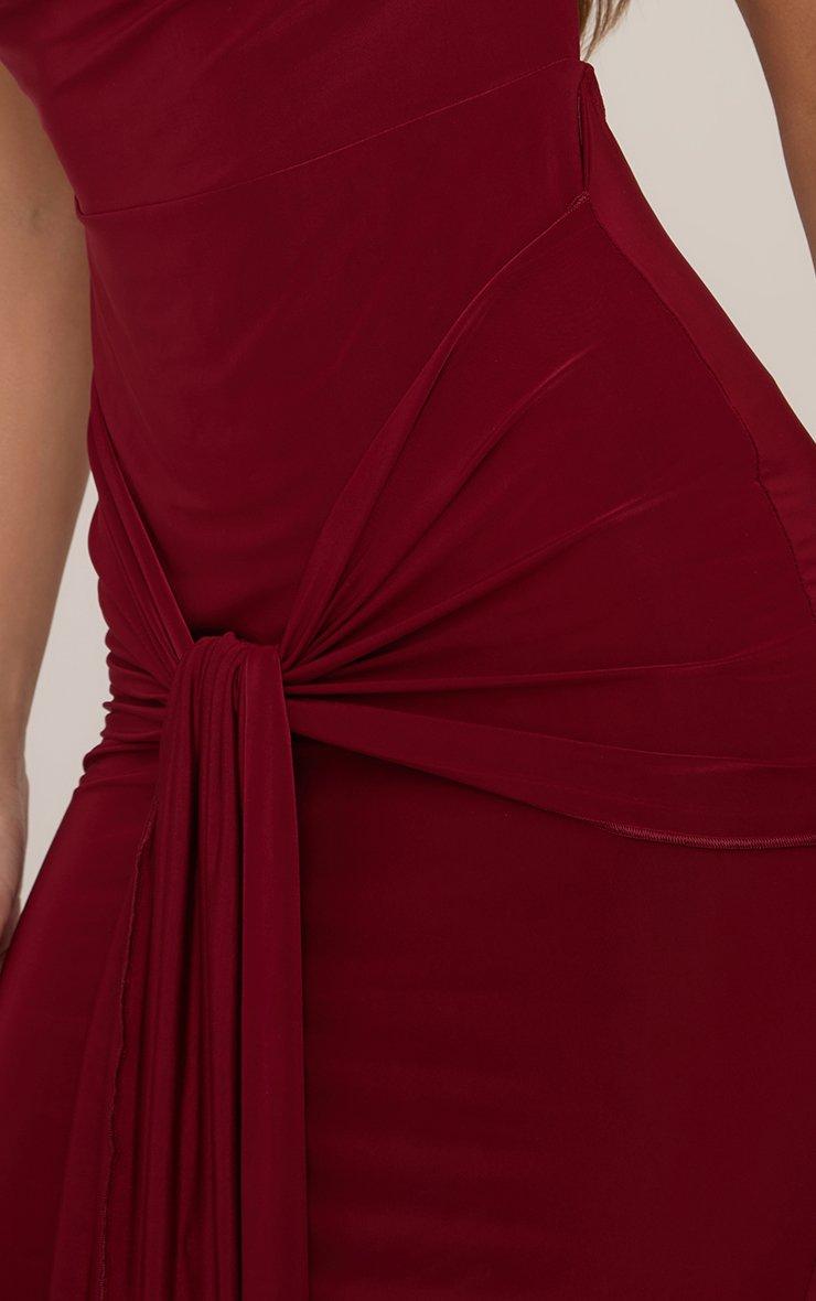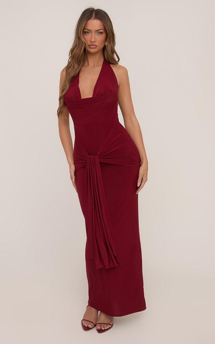 Extreme Cowl Neck Drape Detail Maxi Dress In Burgundy Slinky
