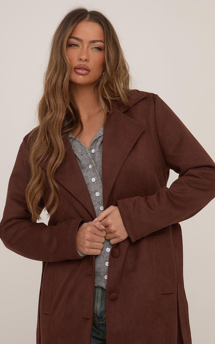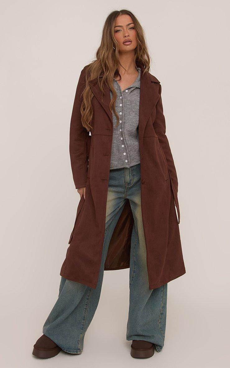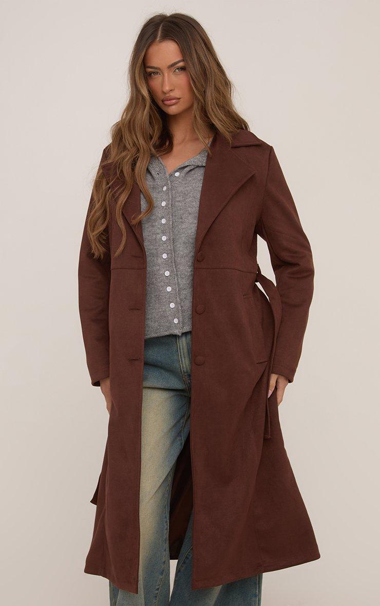 Nail new season style with our Waist Longline Trench Coat In Brown Faux Suede. This faux suede trench coat boasts a rich brown tone and chic longline length. Plus, the tie waist detail cinches you in for a flattering fit. Designed to layer over your iconic AW looks, this trench coat is your new forever fave!