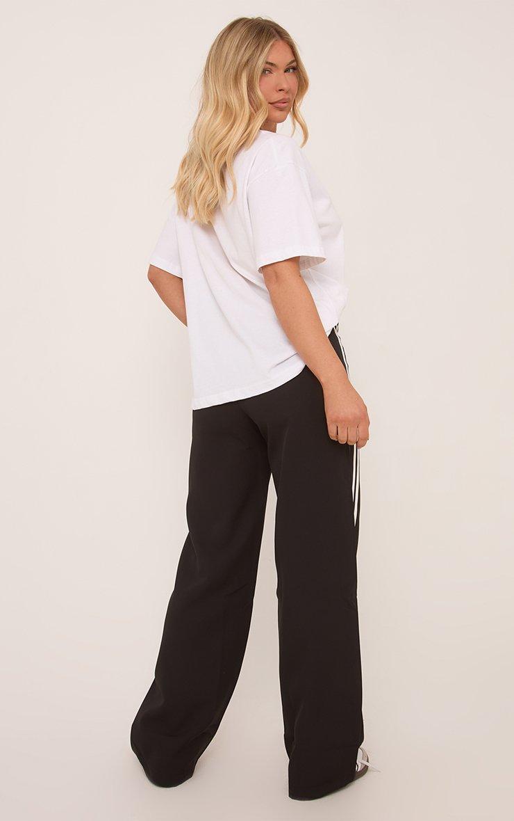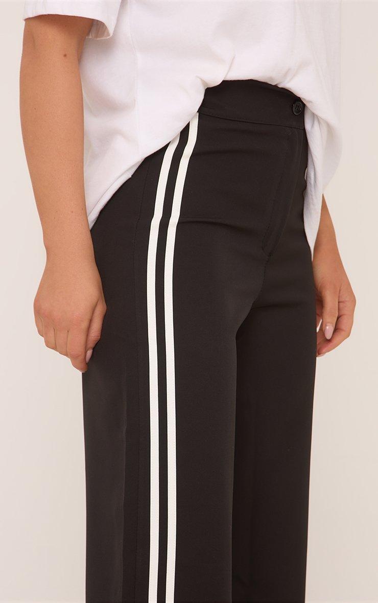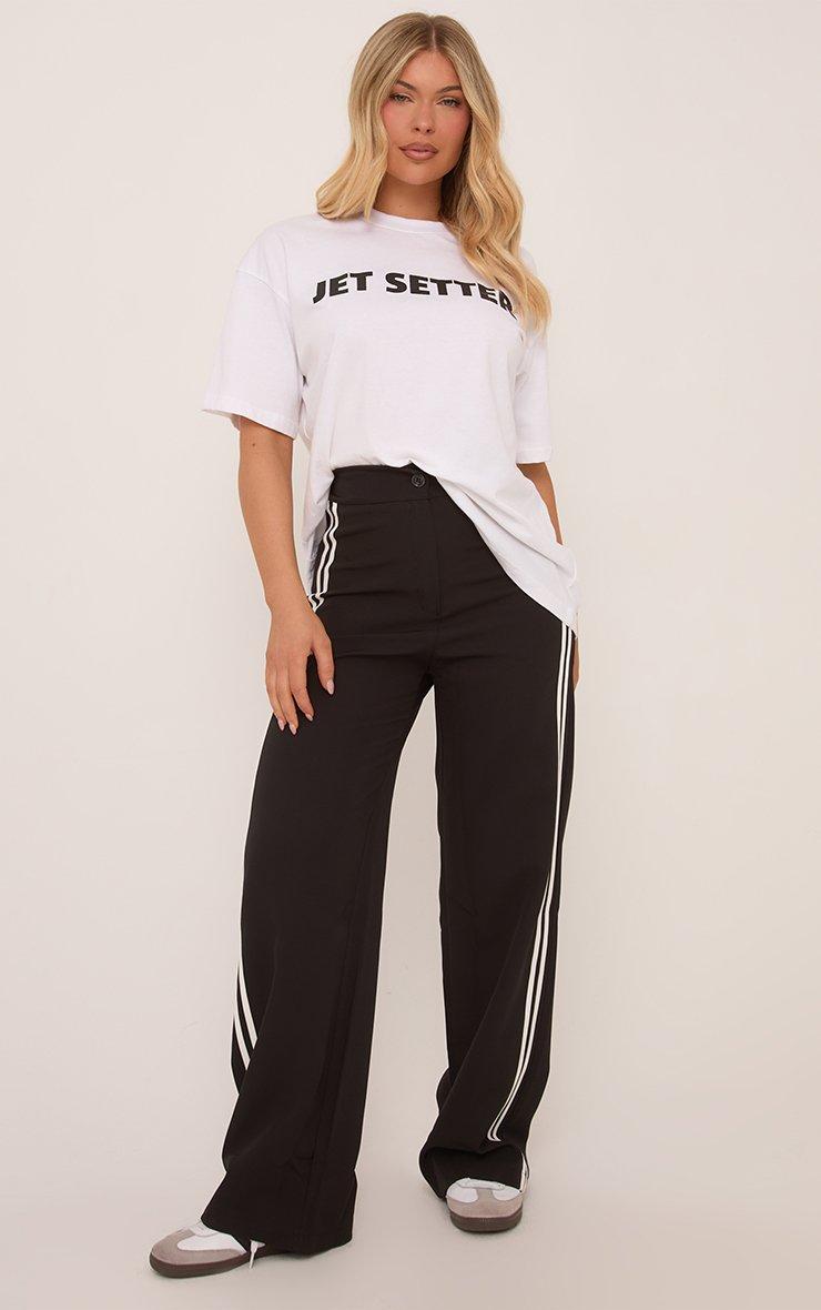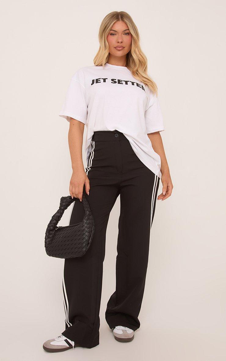 High Waist Stripe Side Straight Leg Tailored Trousers In Black
