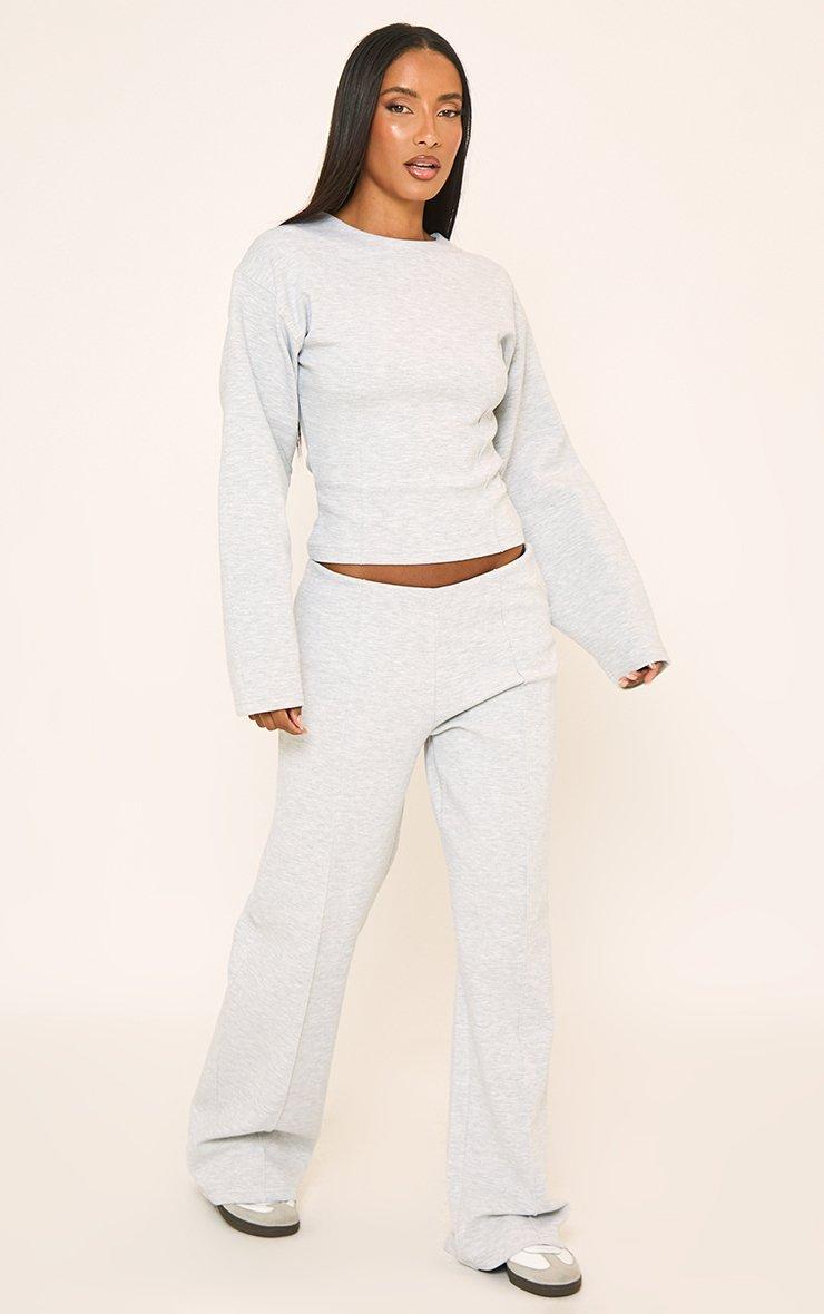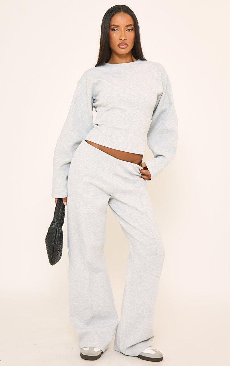Mid Rise Seam Detail Straight Leg Joggers In Grey