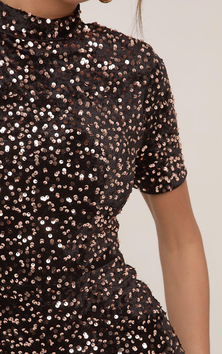 Serve sparkle and sass in our Short Sleeve High Neck Micro Playsuit In Black Velvet Sequin. This velvet sequin playsuit gives all the glam vibes with its short sleeves, high neck and micro length. Crafted in a black velvet sequin, this micro playsuit will have all eyes on you!