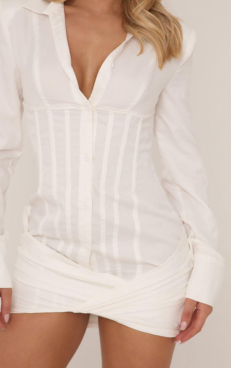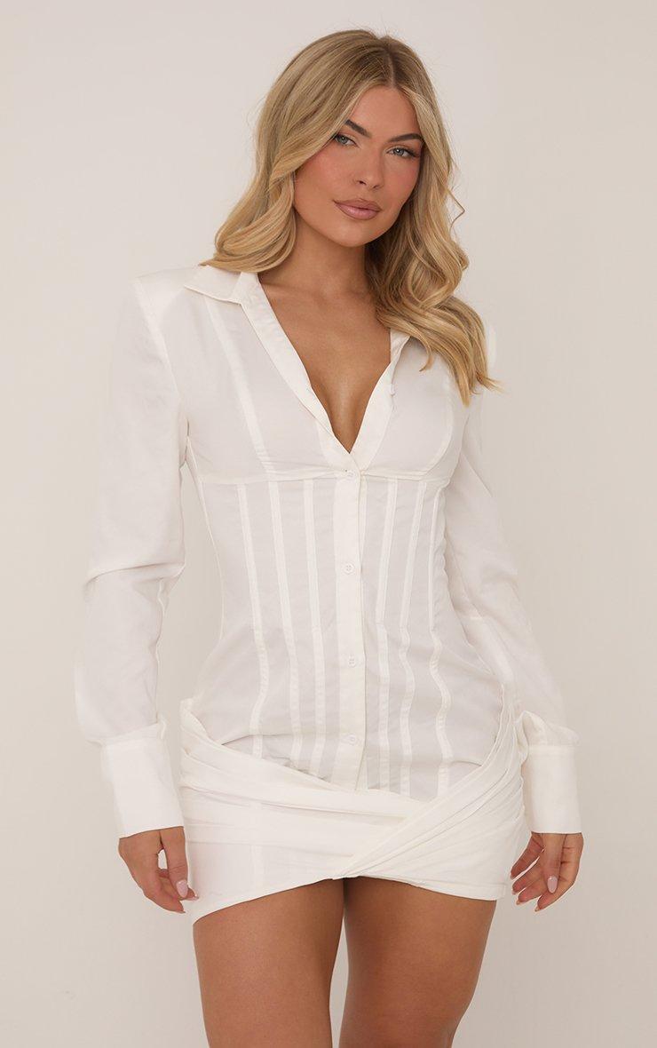 Look all kinds of chic in our Long Sleeve Pleat Detail Shirt Dress In White. This long sleeve white shirt dress is effortlessly hot with its pleated details and fresh white tone. Style this shirt dress with heels or boots for a jaw-dropping look!