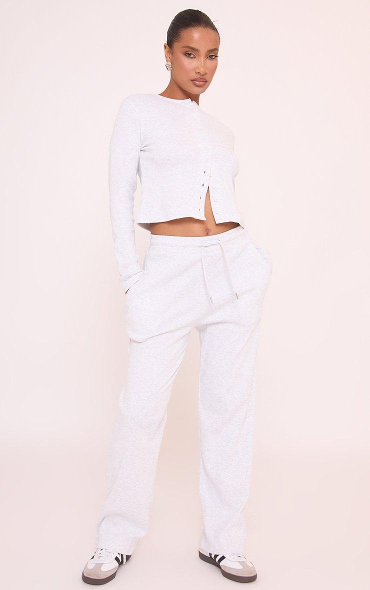 Weekend brunch, doll? Featuring a cosy grey ribbed material with button front detailing and wide leg trousers, this co-ord set is all about that effortless chic look. Perfect for lounging in style!