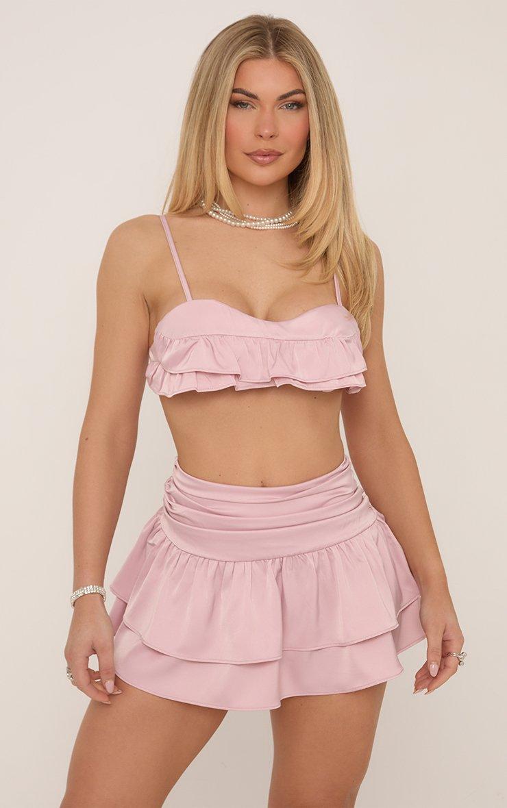 Ruffle Strappy Bralet Top In Pink
