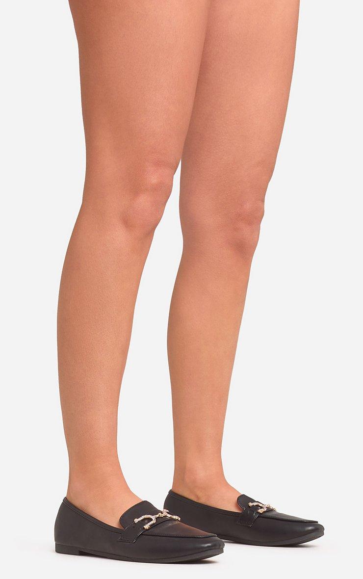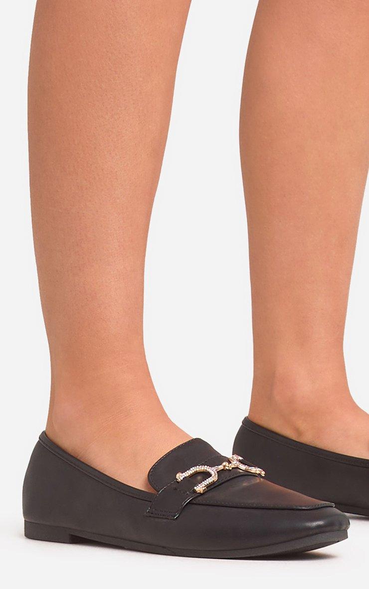 Alixe Diamante Detail Flat Loafer In Black Faux Leather