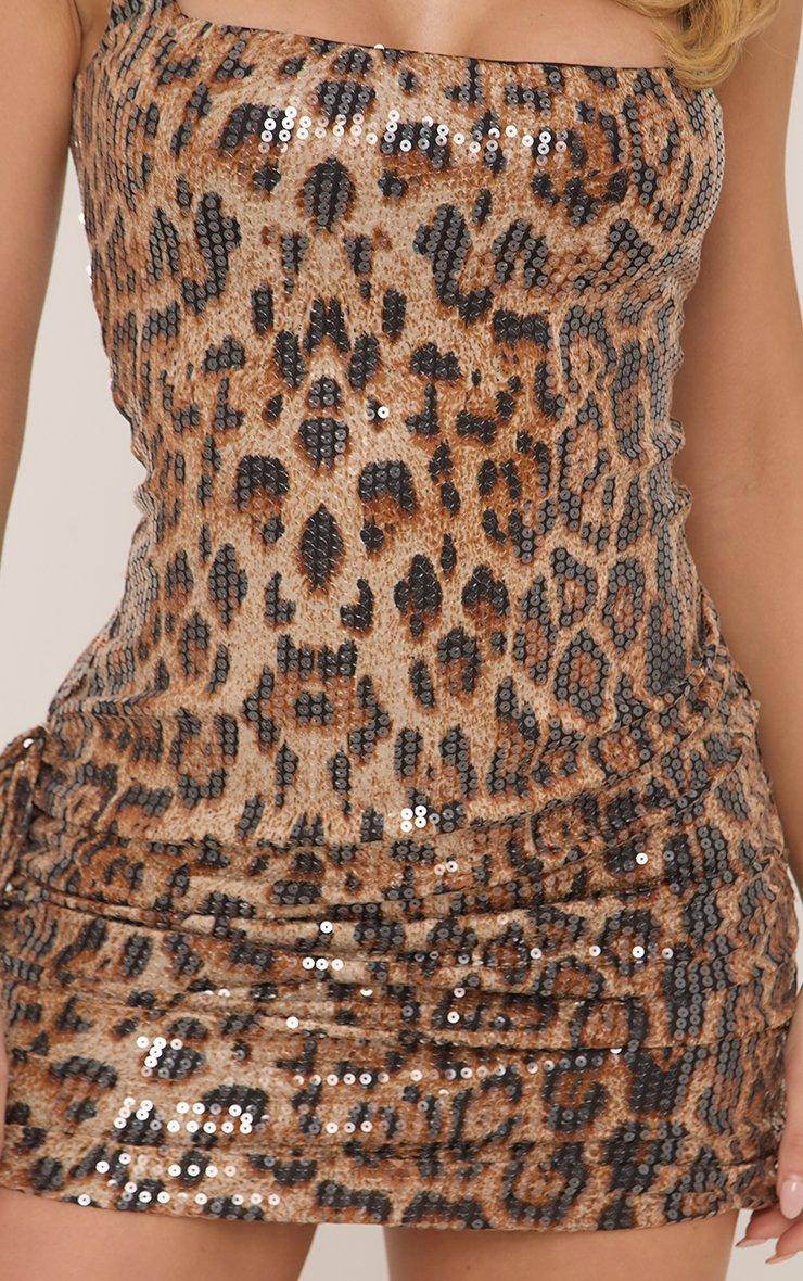 Square Neck Draped Side Mini Dress In Leopard Print Sequin