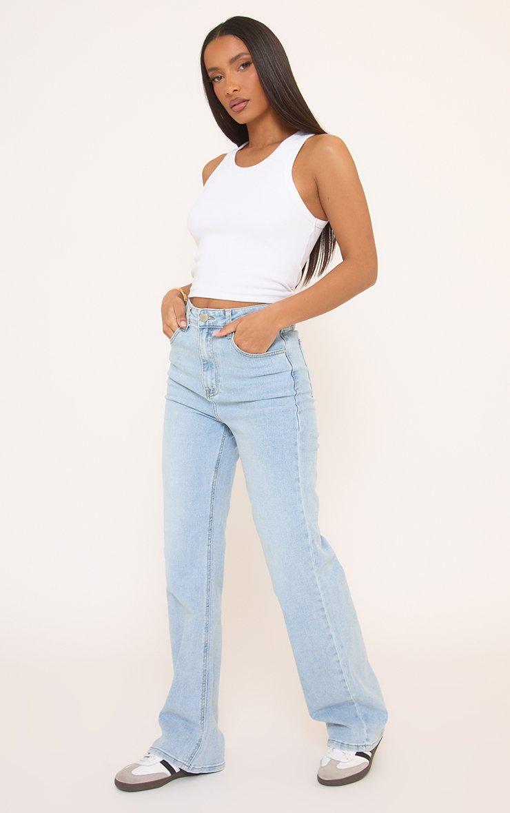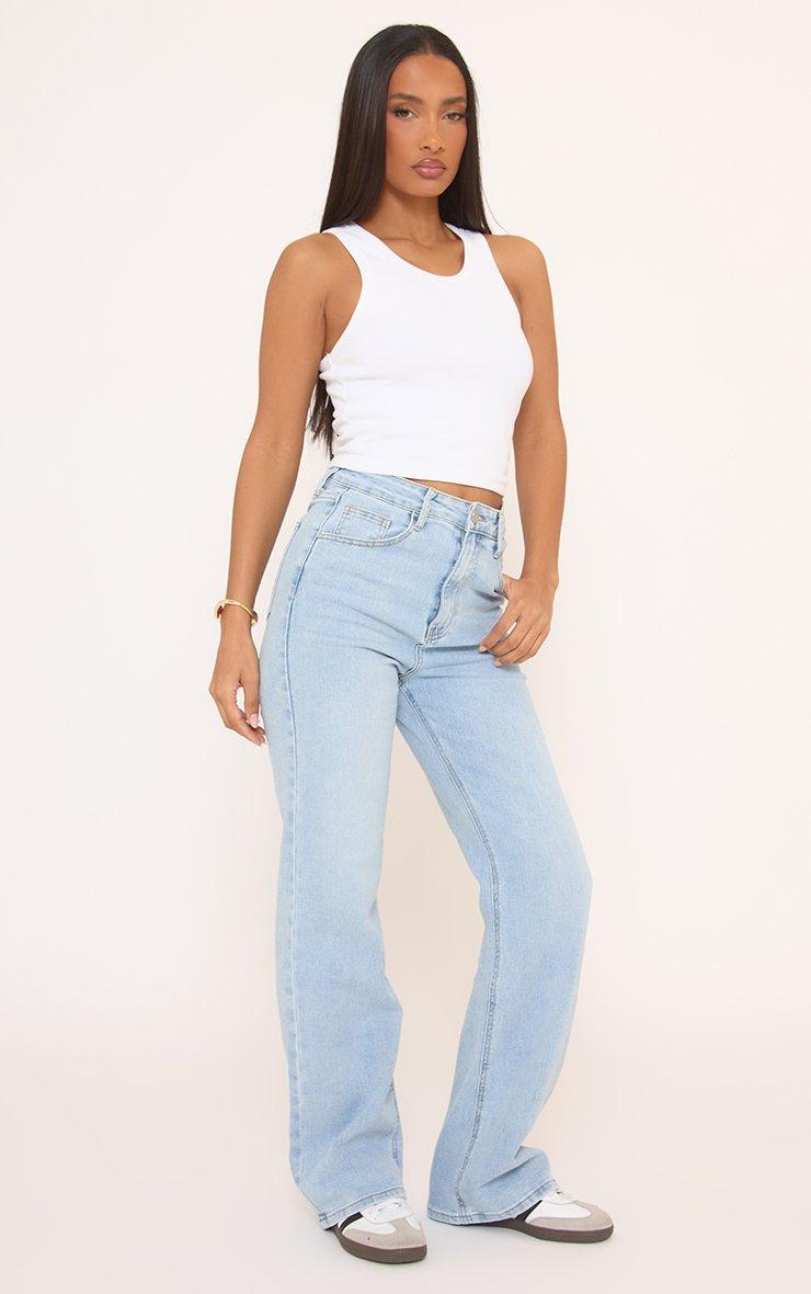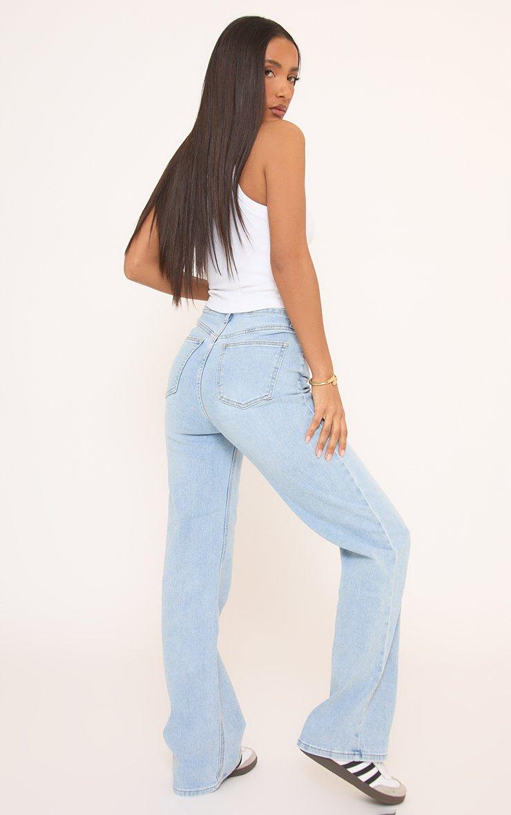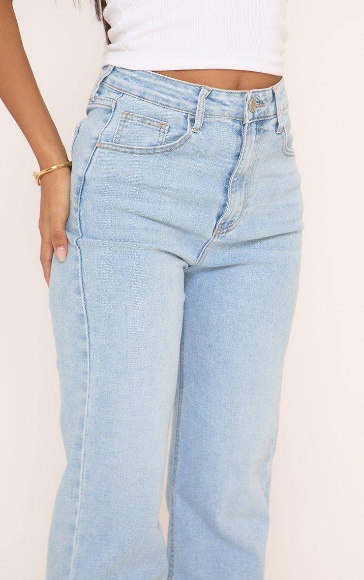 Level up your denim game, doll. Featuring a blue denim material with a high waist, wide-leg fit, and a stretchy design for ultimate comfort, these jeans are a must for off-duty chic.
