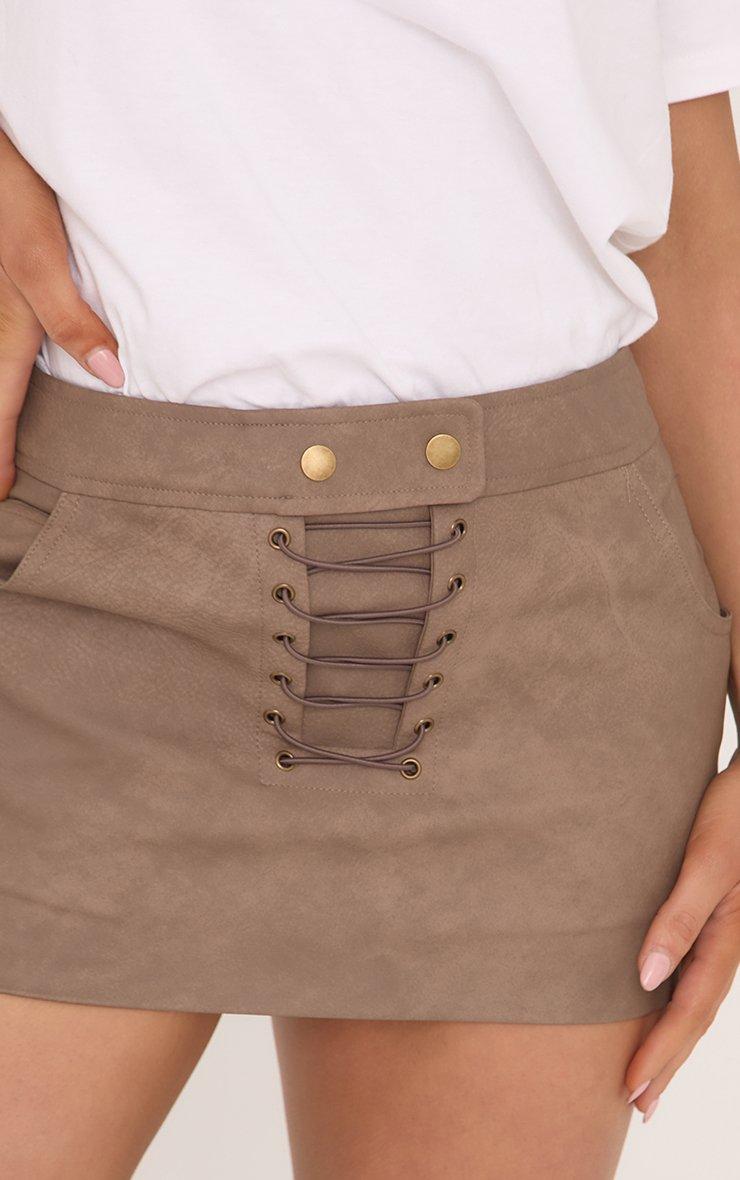 Mid Rise Lace Up Front Mini Skirt In Stone Washed