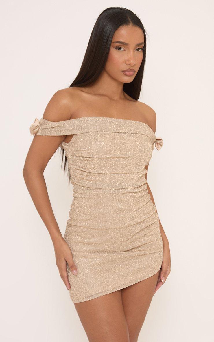Bardot Bow Trim Detail Corseted Bodycon Mini Dress In Bronze