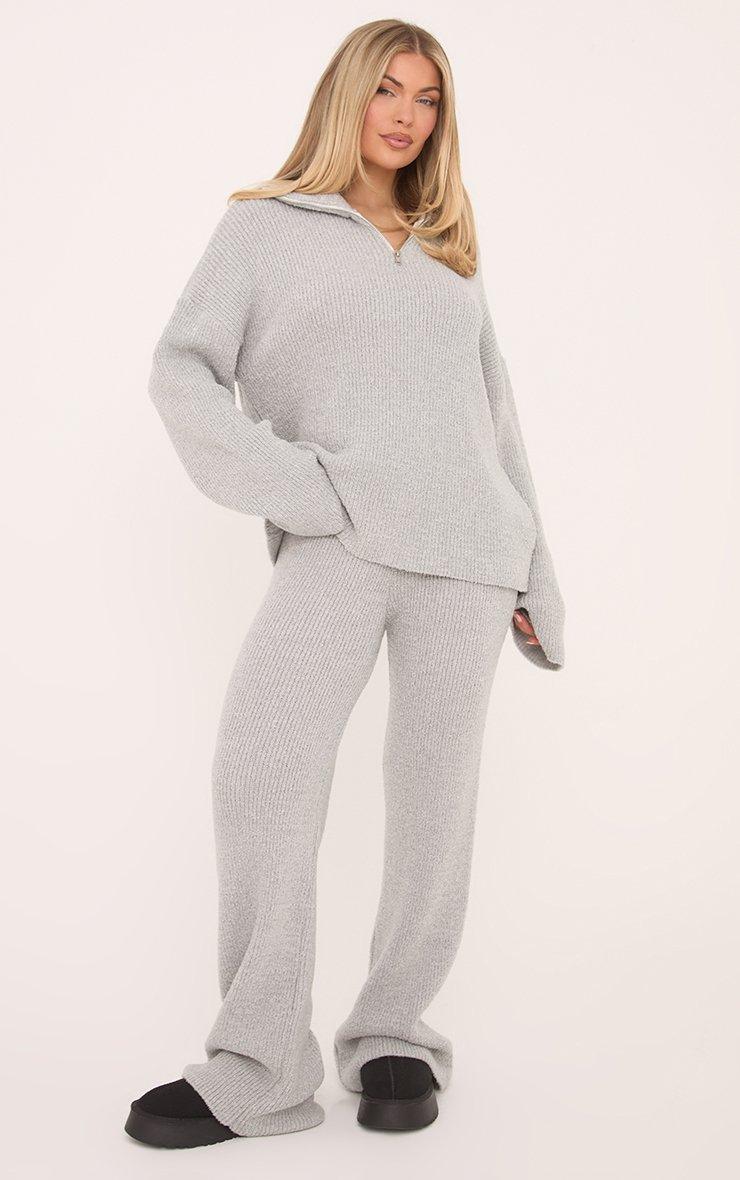 Level up your cosy-chic game with these grey fluffy knit trousers. Featuring a high waist and sleek straight-leg detailing, they’re the perfect blend of comfort and style. Serve effortless vibes, doll!