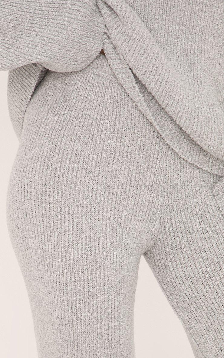 High Waist Straight Leg Trousers In Grey Fluffy Knit