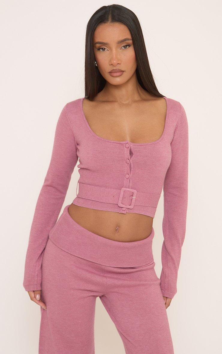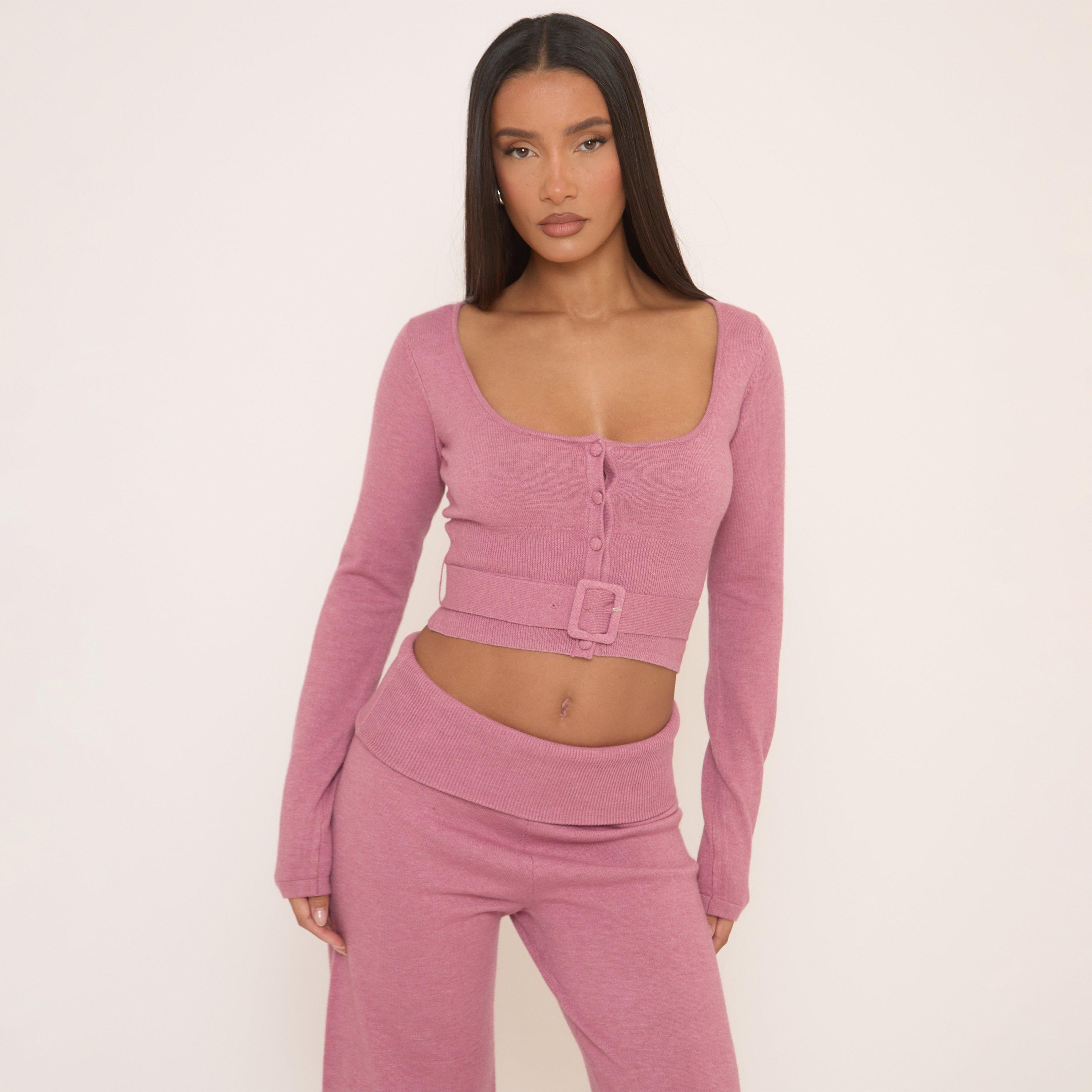 Stay sleek, doll! This pink knit top features long sleeves, a button front, and a belted waist for a polished yet playful vibe. Perfect for leveling up your everyday wardrobe with a chic twist!
