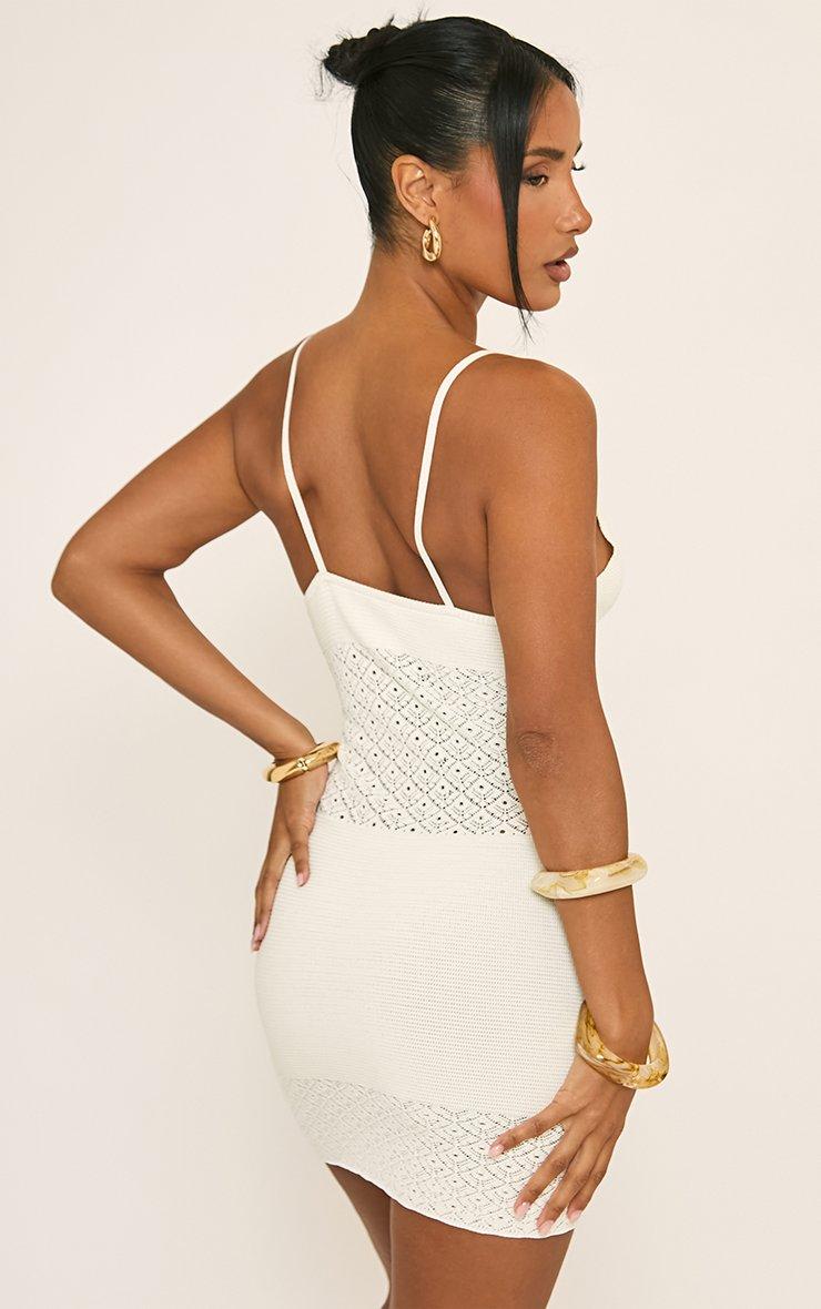 Strappy Plunge Neck Contrast Mini Dress In Cream Crochet