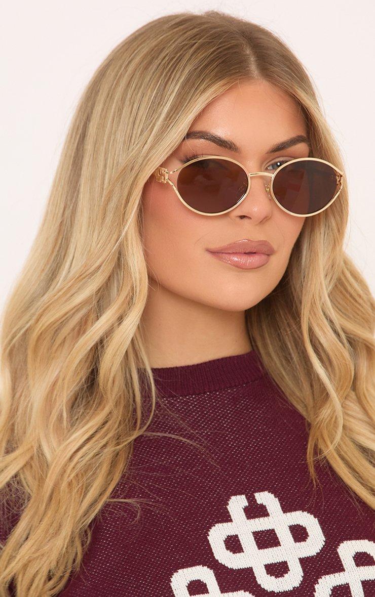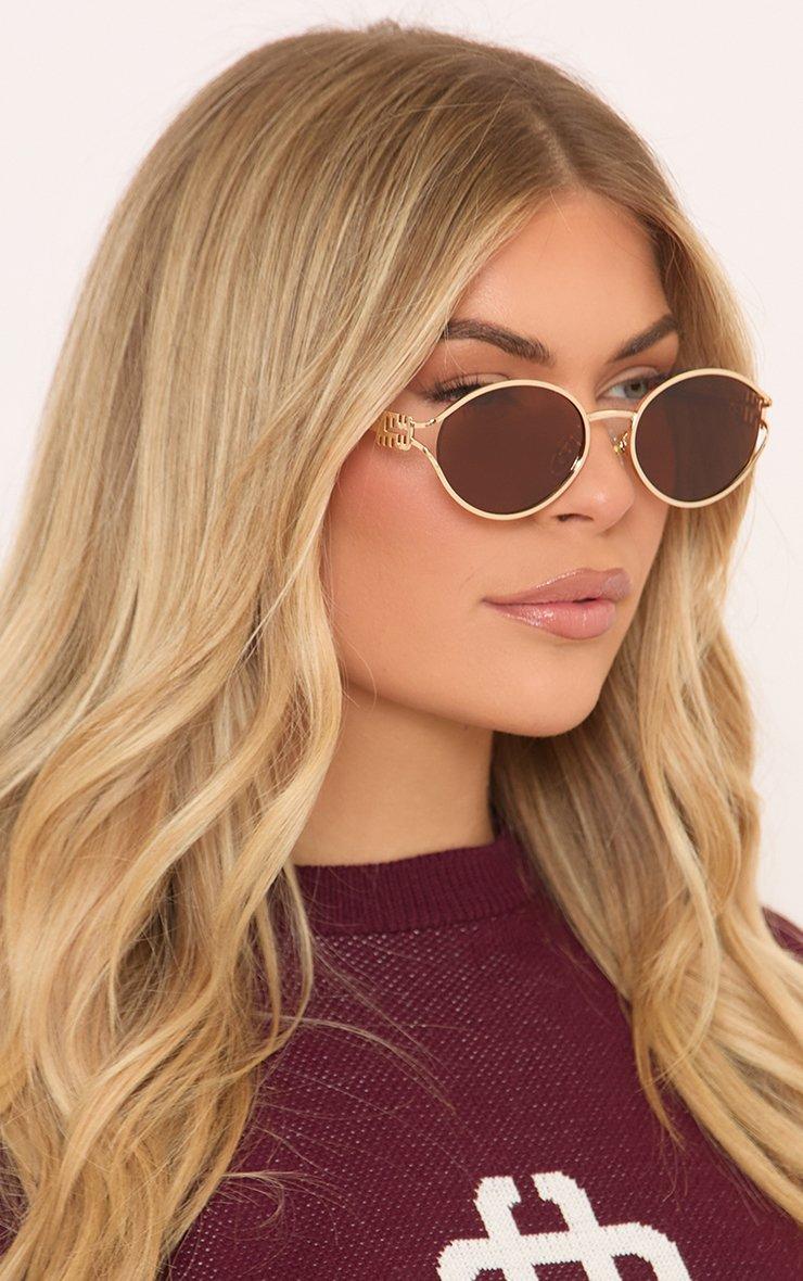 Side Logo Detail Metal Frame Round Shaped Sunglasses In Gold And Brown