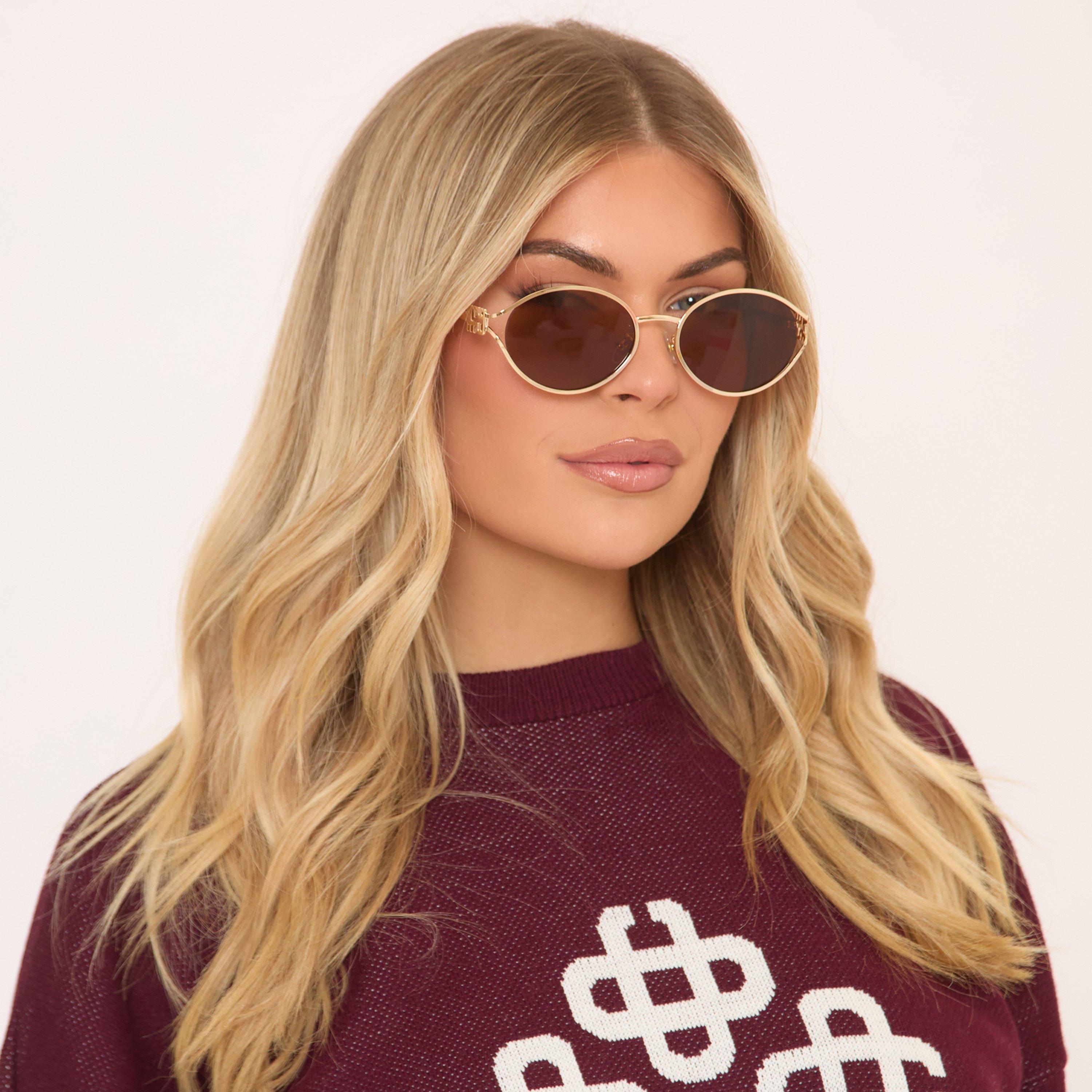 Bring the glam with these gold and brown round-shaped sunglasses. Featuring sleek metal frames and bold side logo detailing, they’re a must for turning everyday looks into style statements.