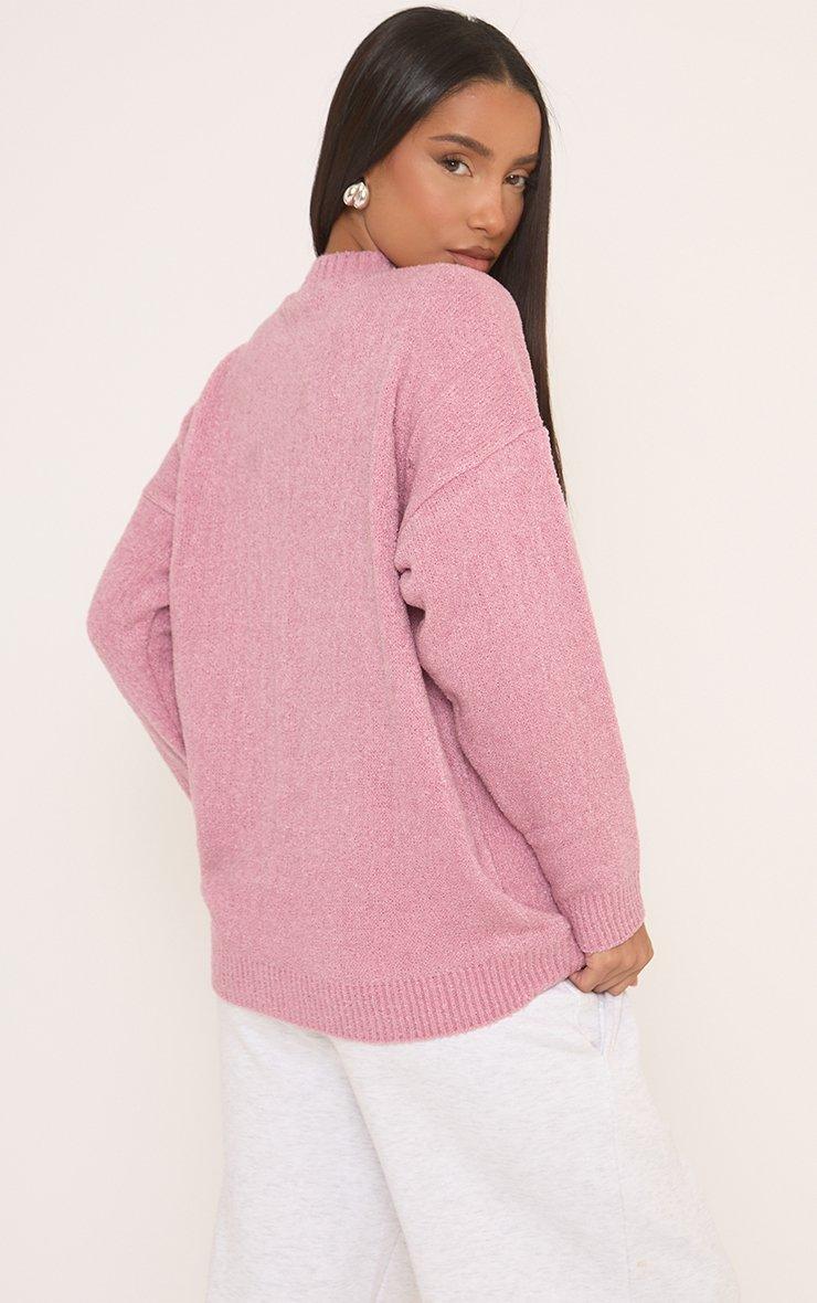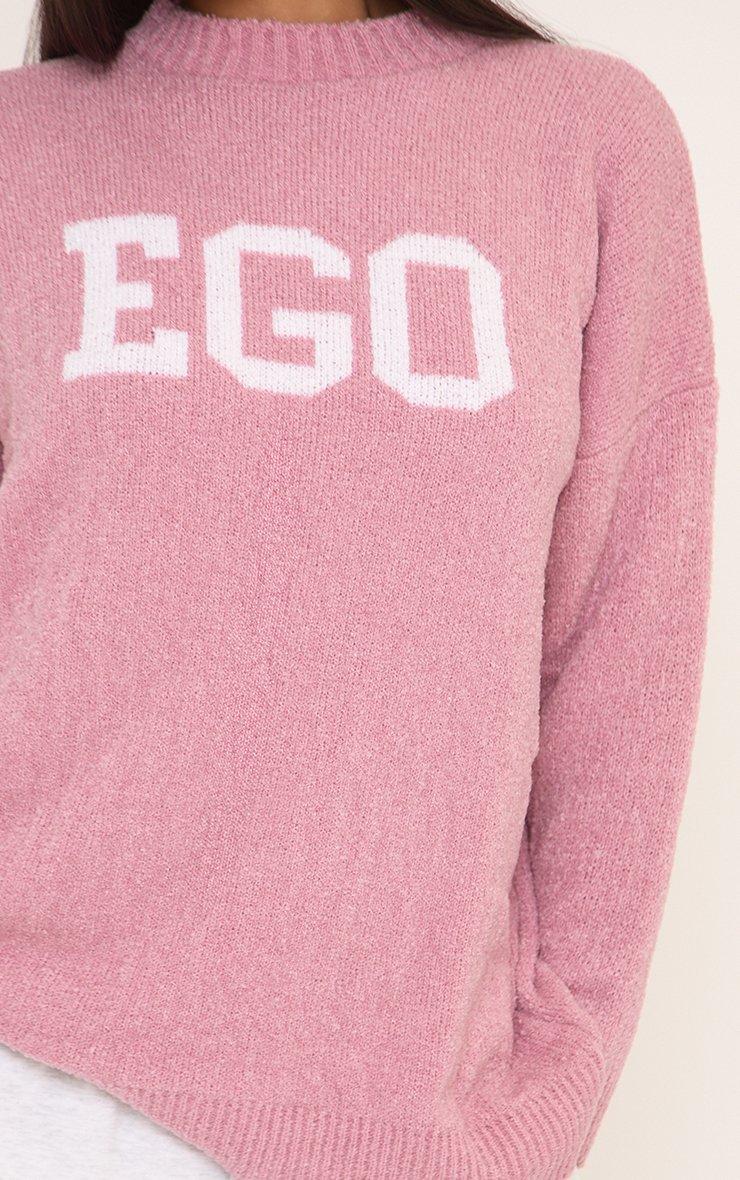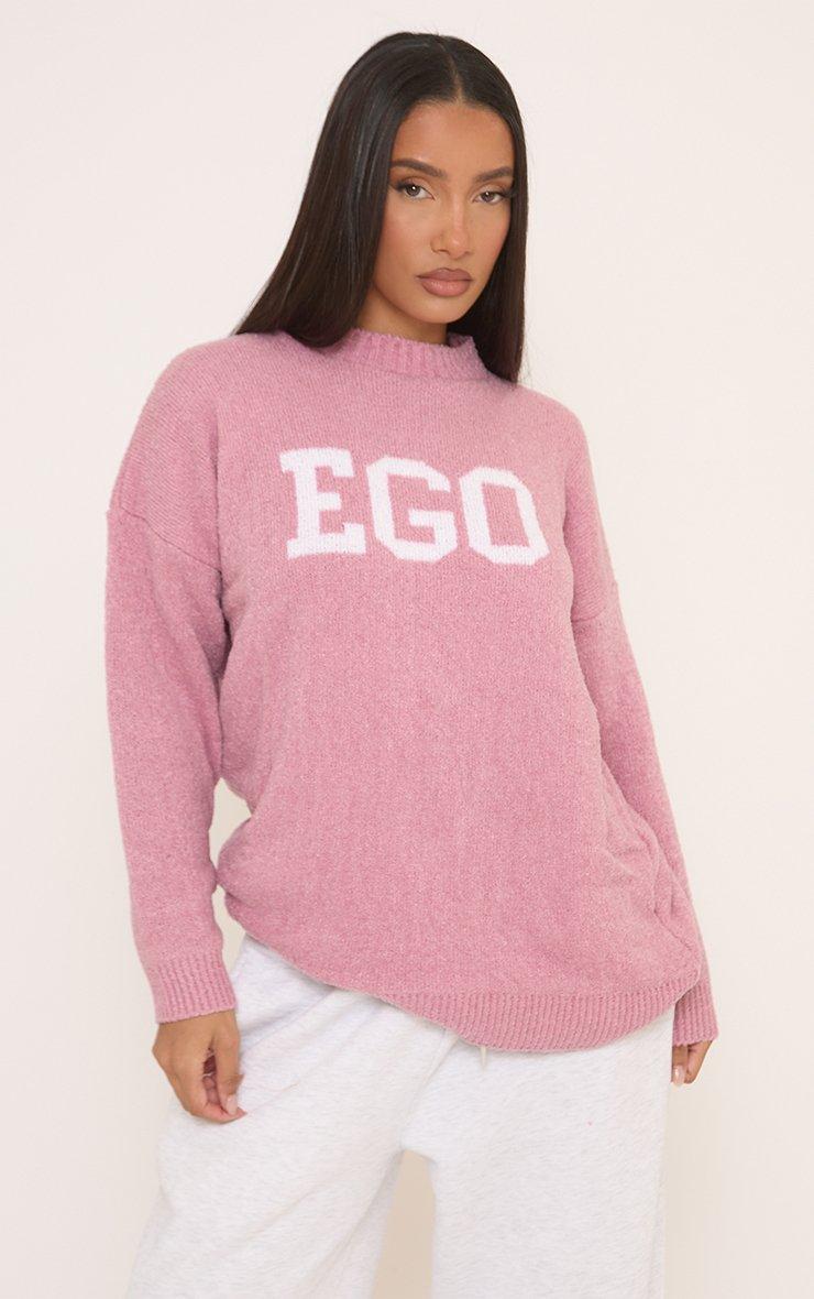 Long Sleeve 'Ego' Logo Detail Oversized Jumper In Pink Boucle Knit
