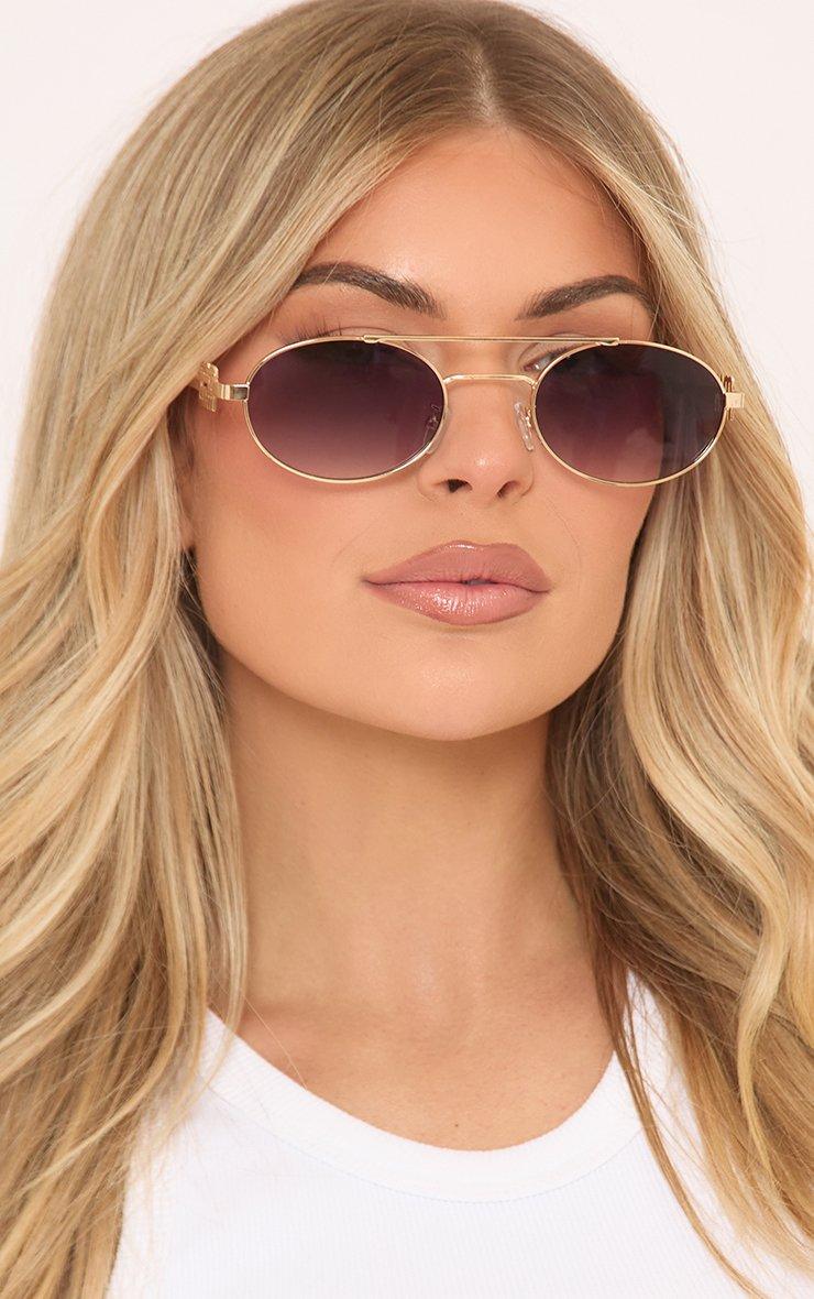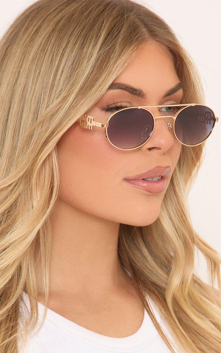 Side Logo Detail Metal Frame Round Aviator Sunglasses In Gold And Brown