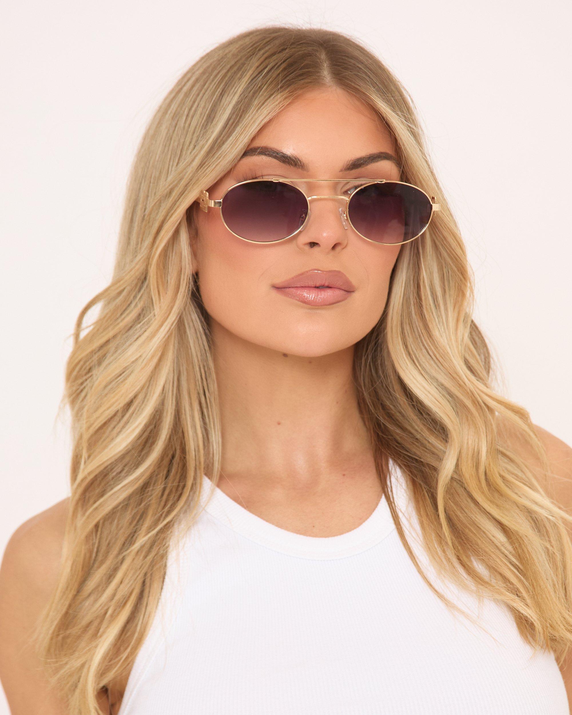 Elevate your look with these gold and brown aviator sunglasses. Featuring a sleek metal frame and bold side logo detailing, they’re the ultimate addition for effortless, laid-back style.