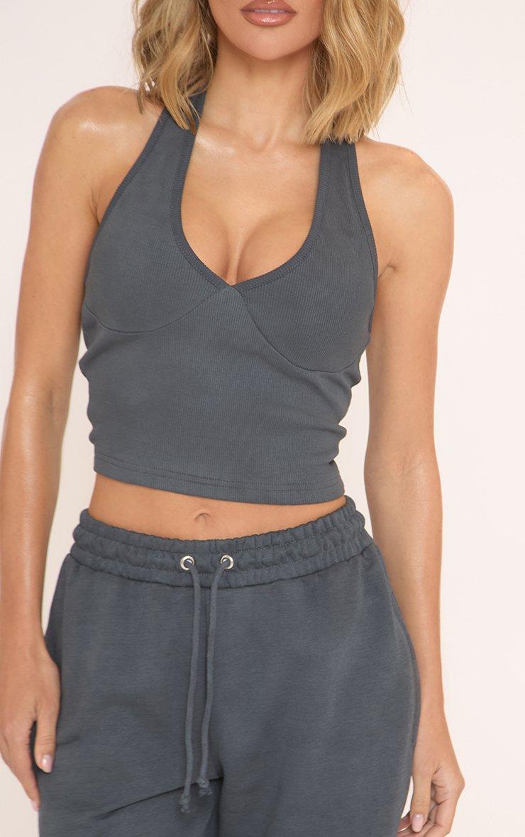 Plunge Halterneck Crop Top In Blue Ribbed
