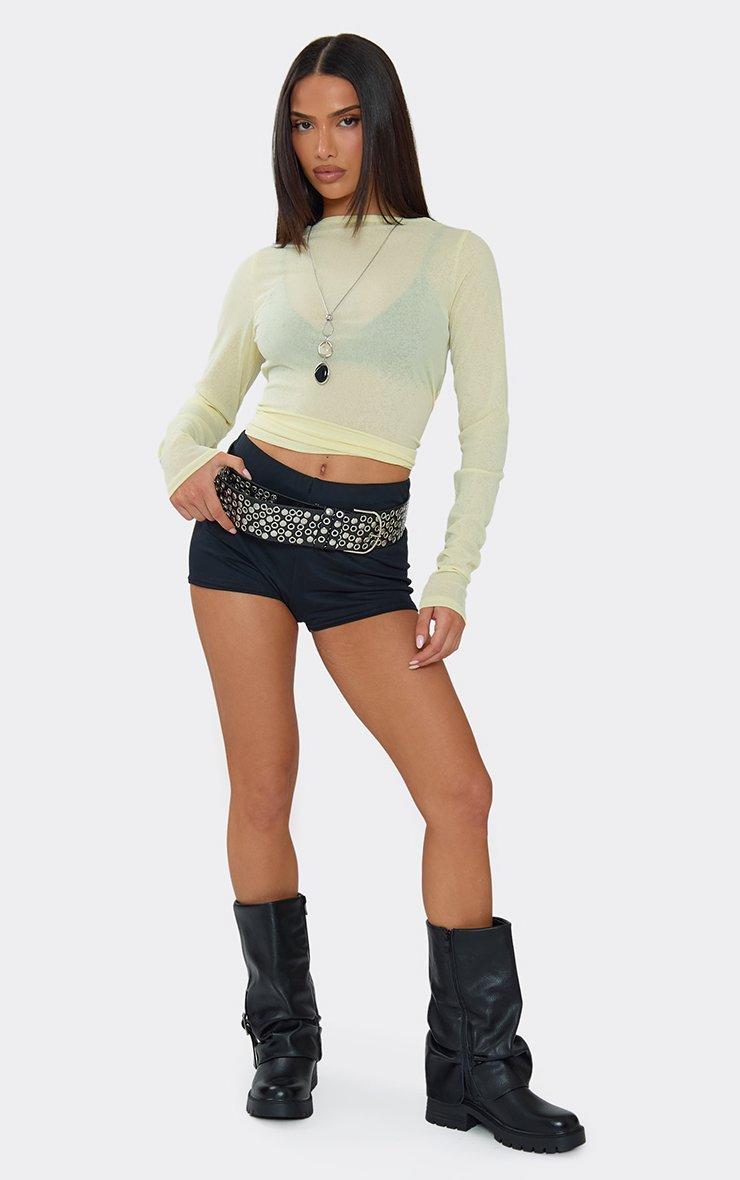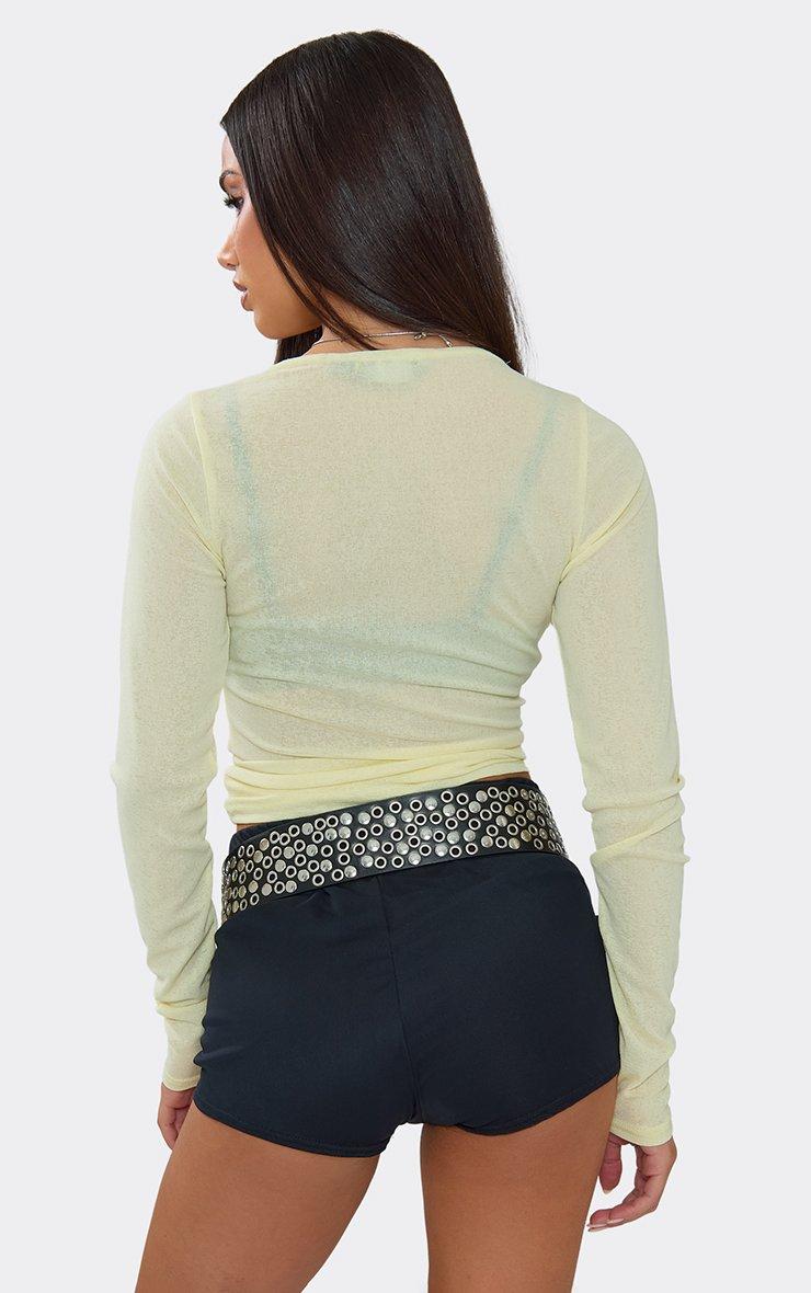 Refresh your summer rotation in lemon material featuring a long sleeve fit and sheer crew neck detailing. This sharp, high-octane top delivers a total "zesty-chic" aesthetic for a major it-girl finish. Style with the matching bikini set and gold jewelry for a polished vibe.