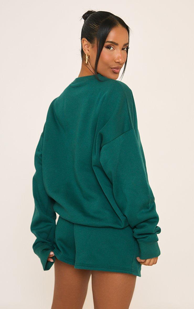 High Waist Embroidered Graphic Detail Sweat Shorts In Green